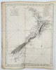"Carte de la Nlle Zelande visitée en 1769 et 1770 par le Lieutenant J. Cook Commandant de l'Endeavour Vaisseau de la Majesté" illustrates the first complete chart of the North and South Islands of New Zealand, featuring topographical relief and bathymetric soundings along the coastlines. The map documents the track of the HMS Endeavour during Cook's first voyage, identifying key geographic features such as the Cook Strait and various bays named during the expedition. This engraving was published in Paris in 1774 by Saillant and Nyon as part of the French edition of Account of the Voyages undertaken by the order of His Present Majesty for making Discoveries in the Southern Hemisphere. The work represents a landmark in Pacific cartography, effectively proving New Zealand consisted of two main islands rather than being part of a larger southern continent.