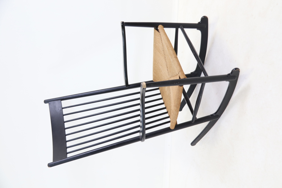 Bilder Hans J Wegner, gungstol, trä, flätad sits.