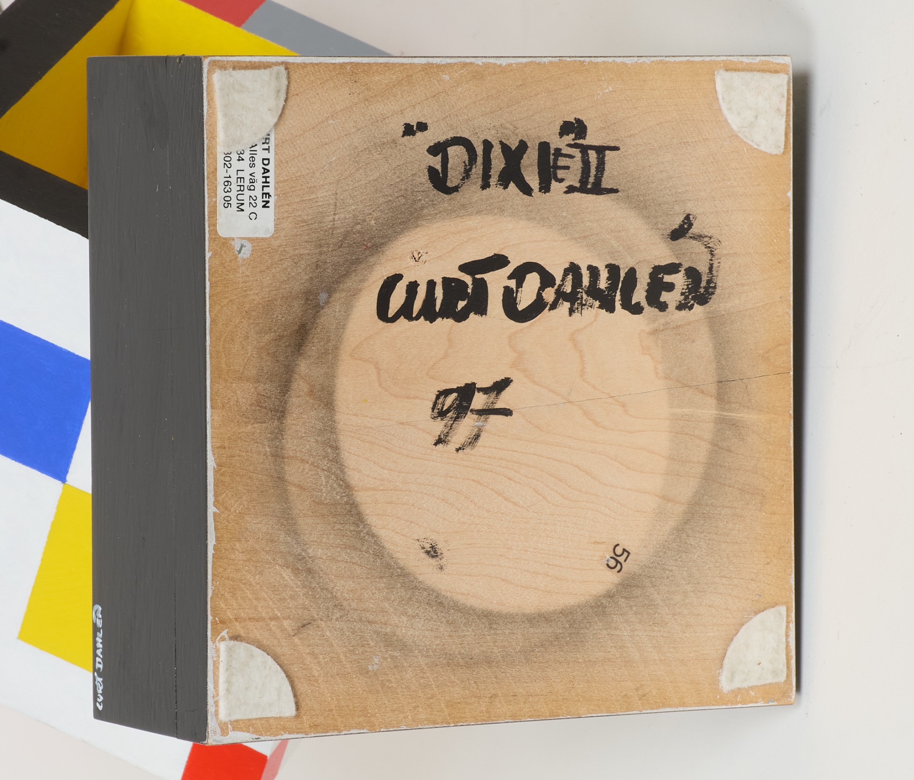 Bemålat trä, signerad samt daterad - 97. Höjd inkl sockel 57 cm.