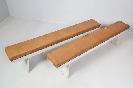 Bilder Bänkar ett par, trä & galon L=185 H=48