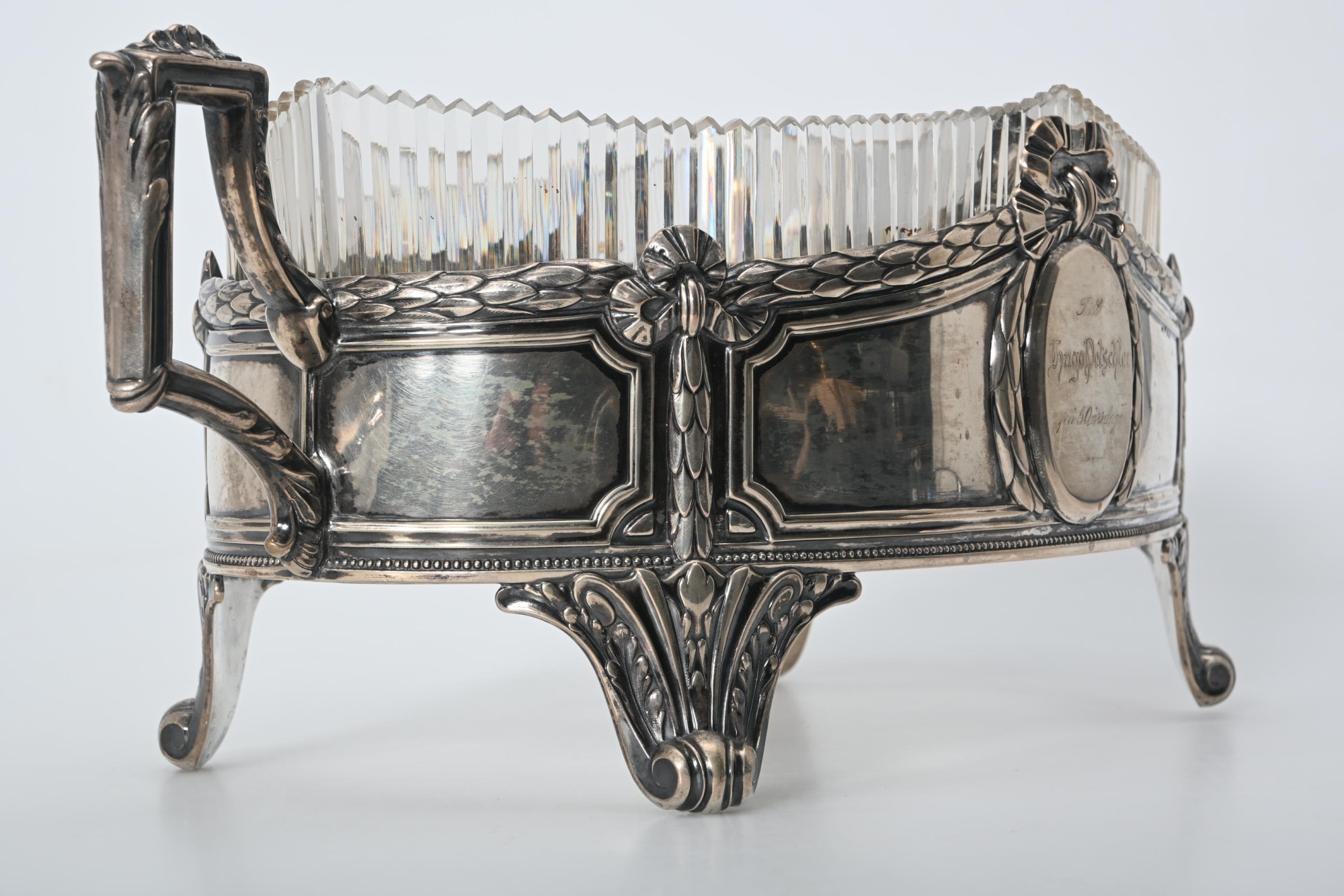 Silver Jardiniere med glasinsats, Silvervikt 749 gr