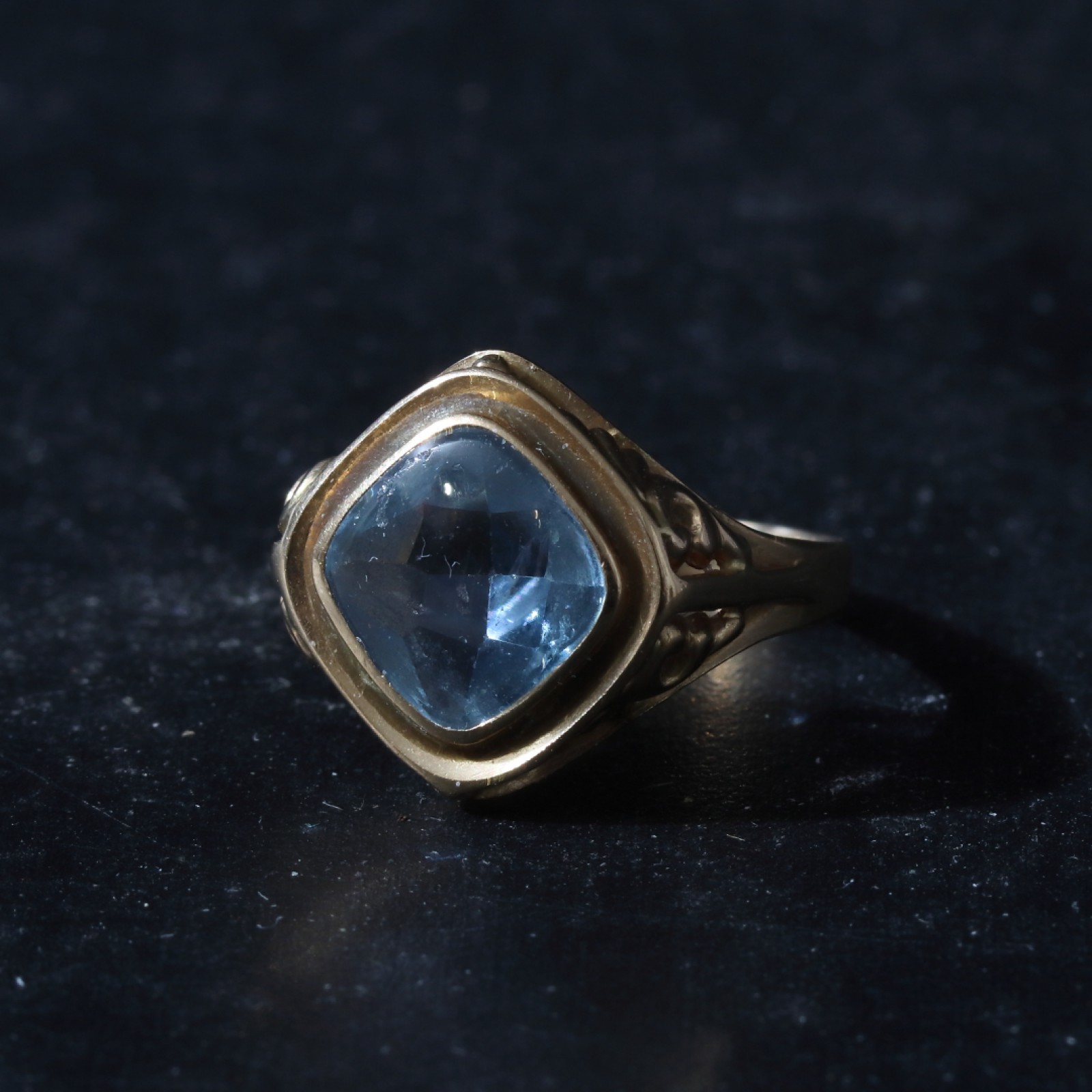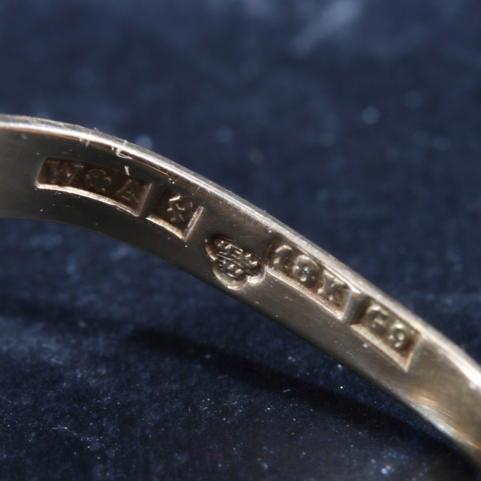 18 karat guld, slipad sten, något oval (klämd), G&W, Sävsjö, 1957, bredd 2,5-15 mm, strl.ca:18 mm, bruttovikt 3,30 gram. (vån3)