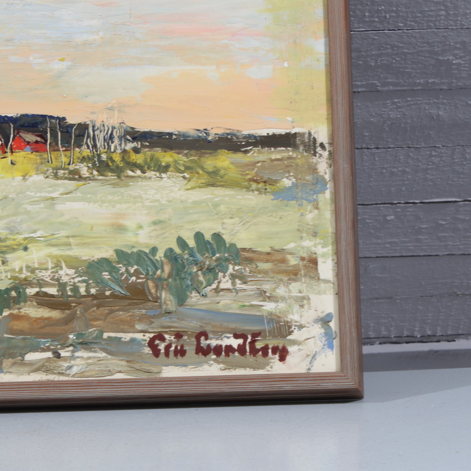 Olja på duk, "Naturscen", ställvis med färgbortfall, ram 37x84 cm. (vån3)