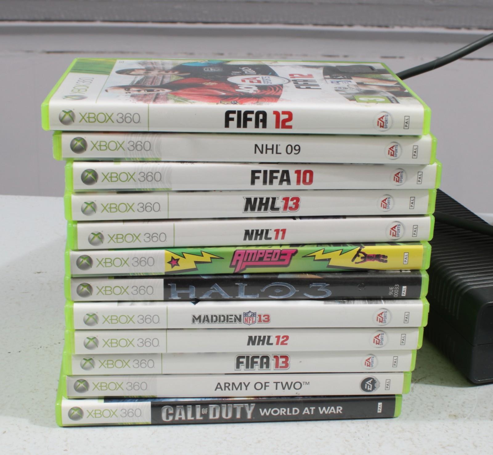1st spelkonsol, 2st handkontroller samt 12st spel (för titlar se bilder). (vån3)