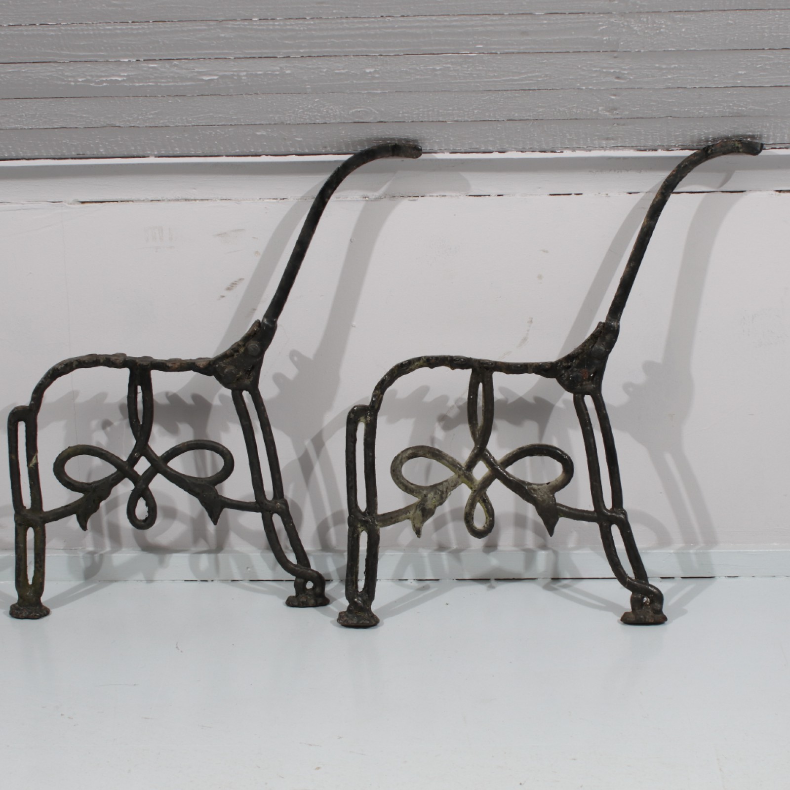 2 stycken, smide/gjutjärn, 1900-talets mitt, åldersrelaterat slitage, höjd 71 cm. (vån2)