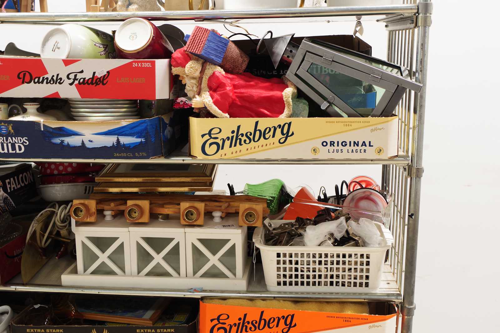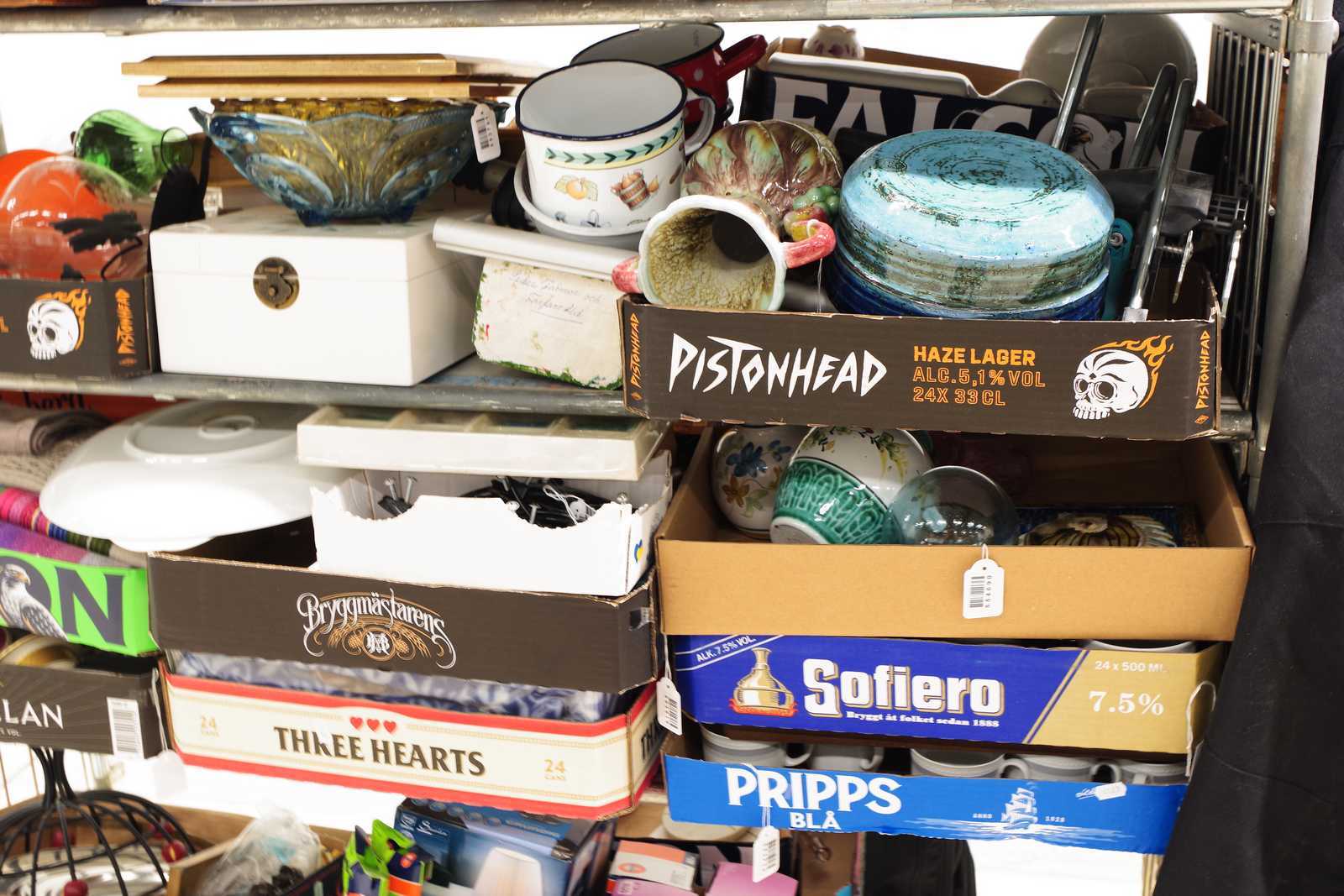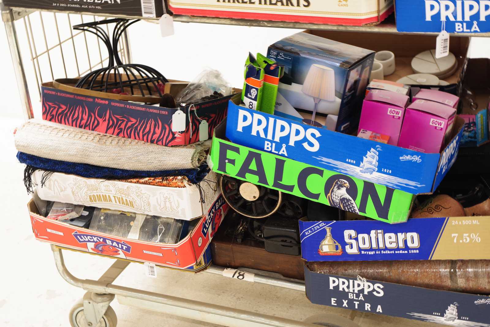Parti OSÅLT GODS från tidigare auktioner. Säljes till förmån för barncancerfonden. Obs! Köparen måste ta hela partiet. (skador kan förekomma, vagnen ingår ej)