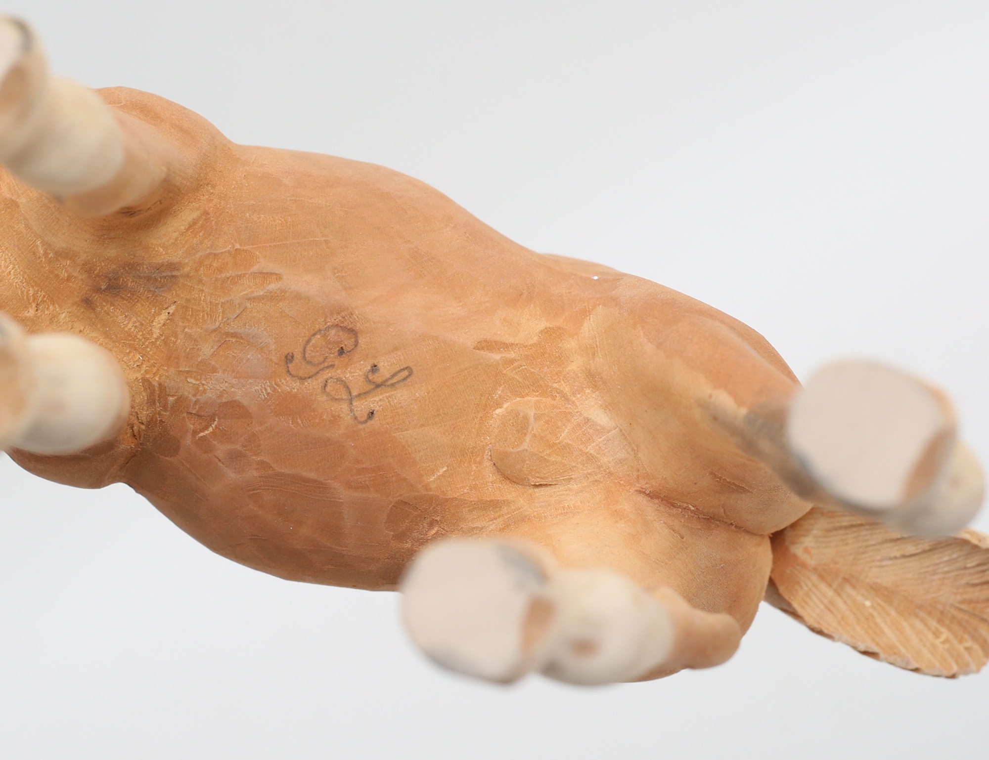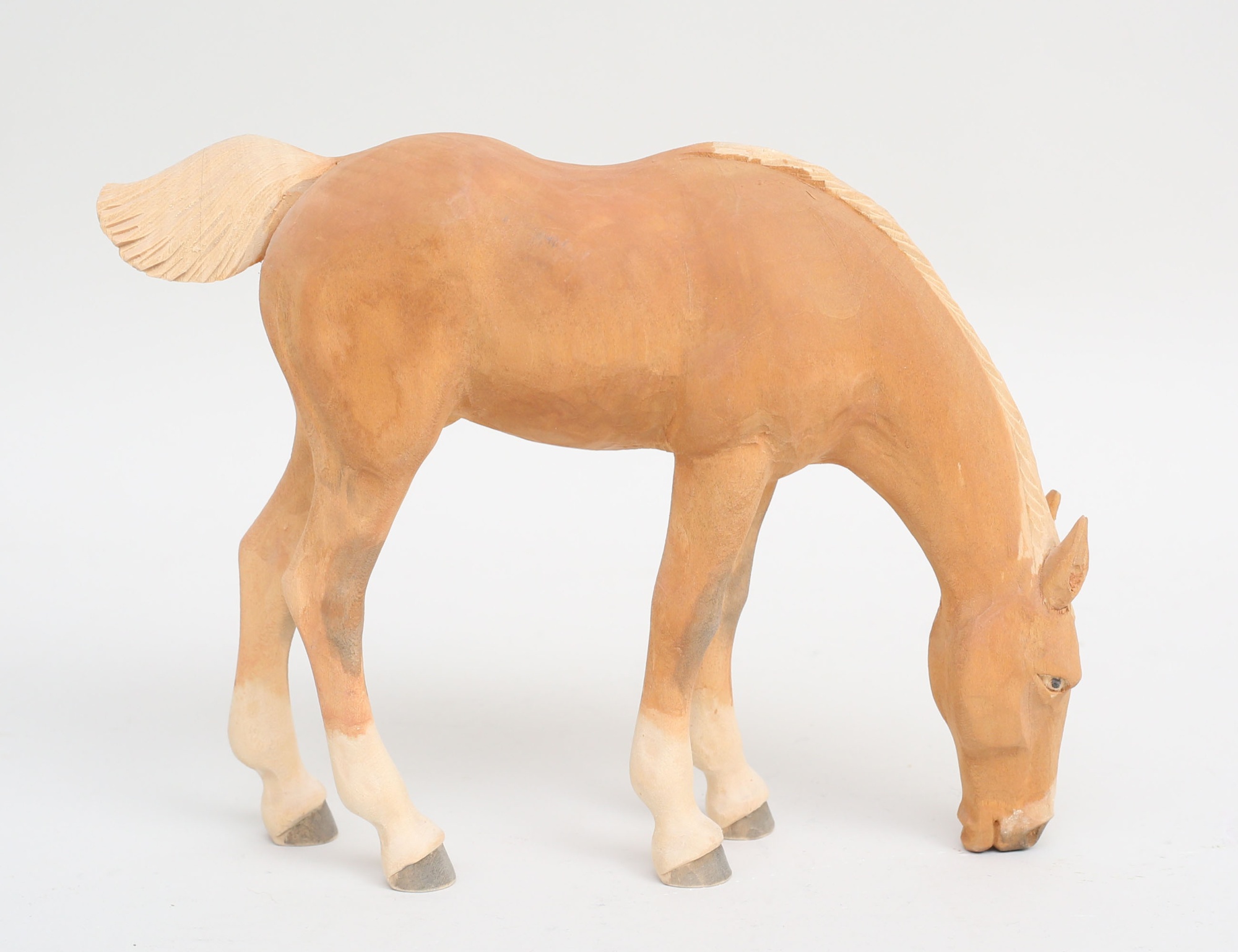i form av betande häst, träskuren, monogramsignerad, höjd 16,5, bredd 20