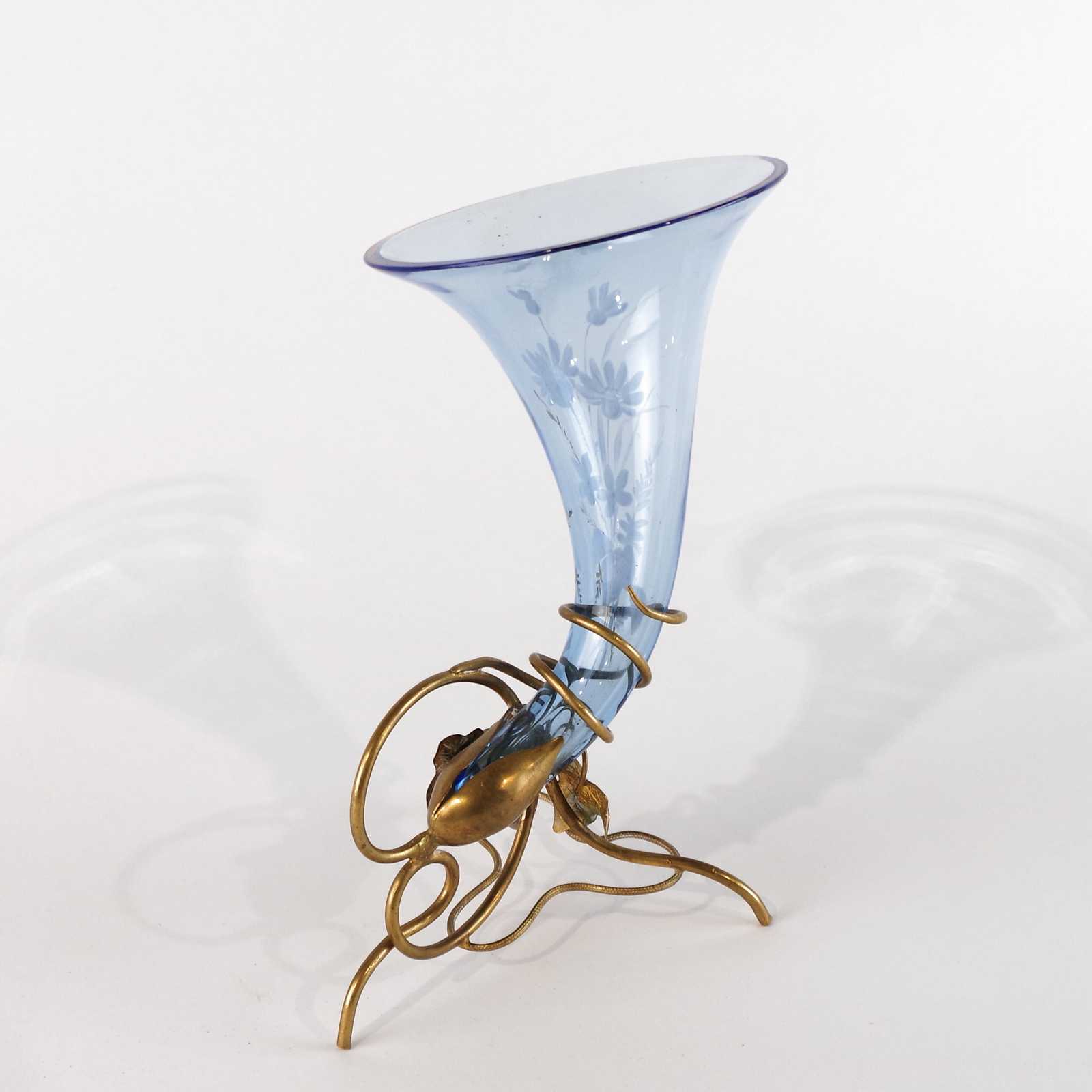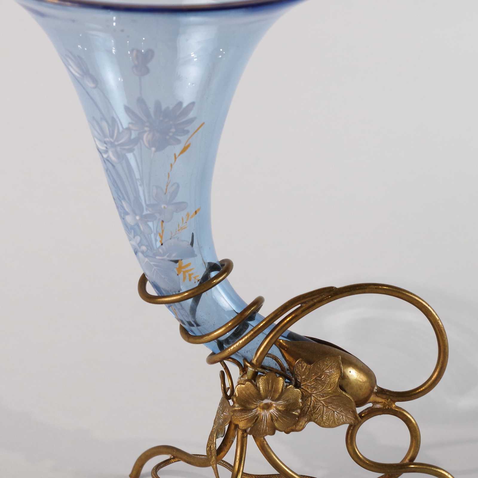 VAS äldre glas/metall, handmålad. H:19cm D:10cm.