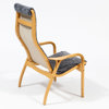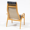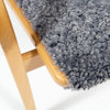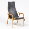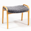Fåtölj samt fotpall, Swedese, formgiven 1956, stomme i bok, klädsel i grått fårskinn, brännmärkt och etikettmärkt Swedese, sitthöjd ca 40 cm