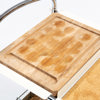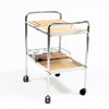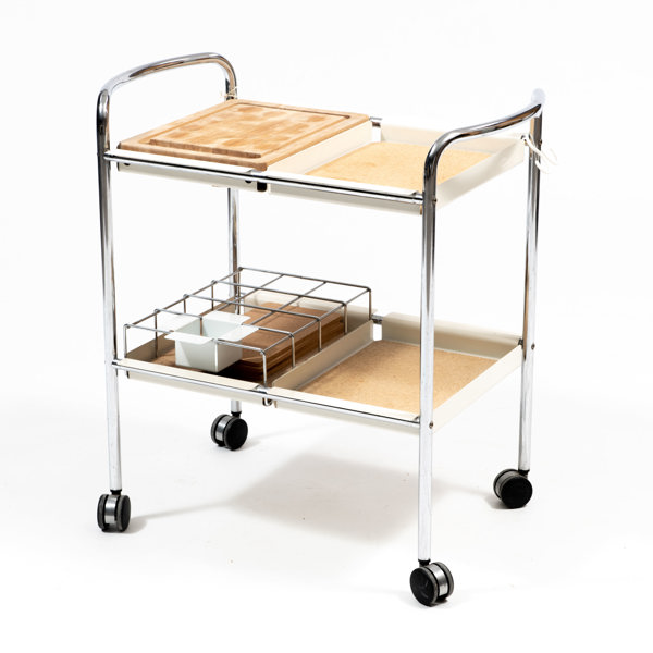Serveringsvagn, "Supporter", kromad stomme, vitlackerade metallbrickor, korkunderlägg, skärbräda, höjd 80, 76 x 49 cm