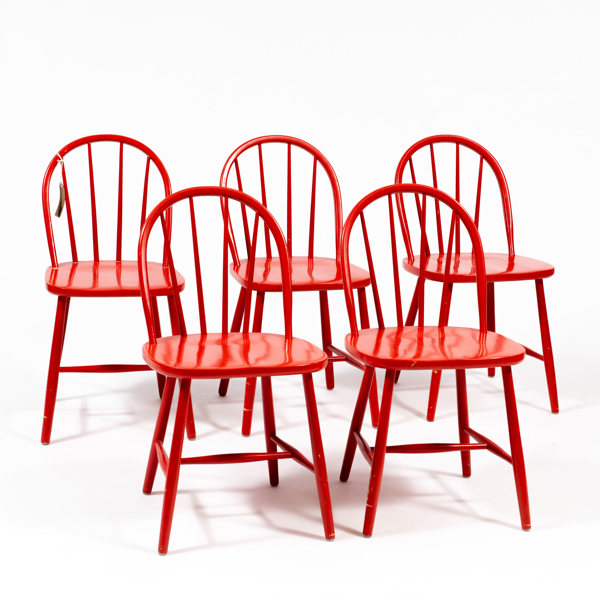 Rödlackerade, en etikettmärkt undertill Edsbyns möbelfabrik, sitthöjd 46 cm