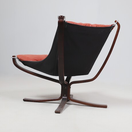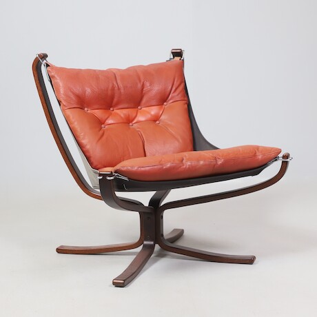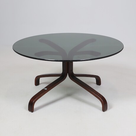 Bilder Sigurd Ressel, sittgrupp "falcon" Vatne möbler Norge 1970-tal, bord med glasskiva D=90 H=46 + 4st fåtöljer