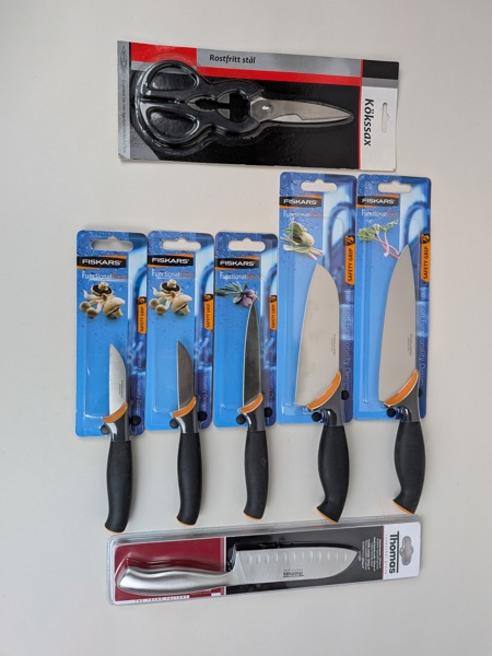 Köksknivar, bl.a. Fiskars Obegagnade