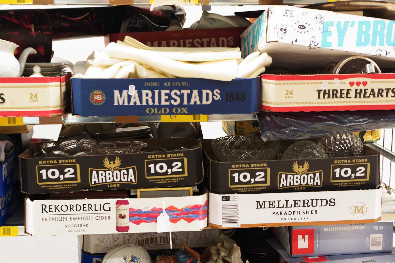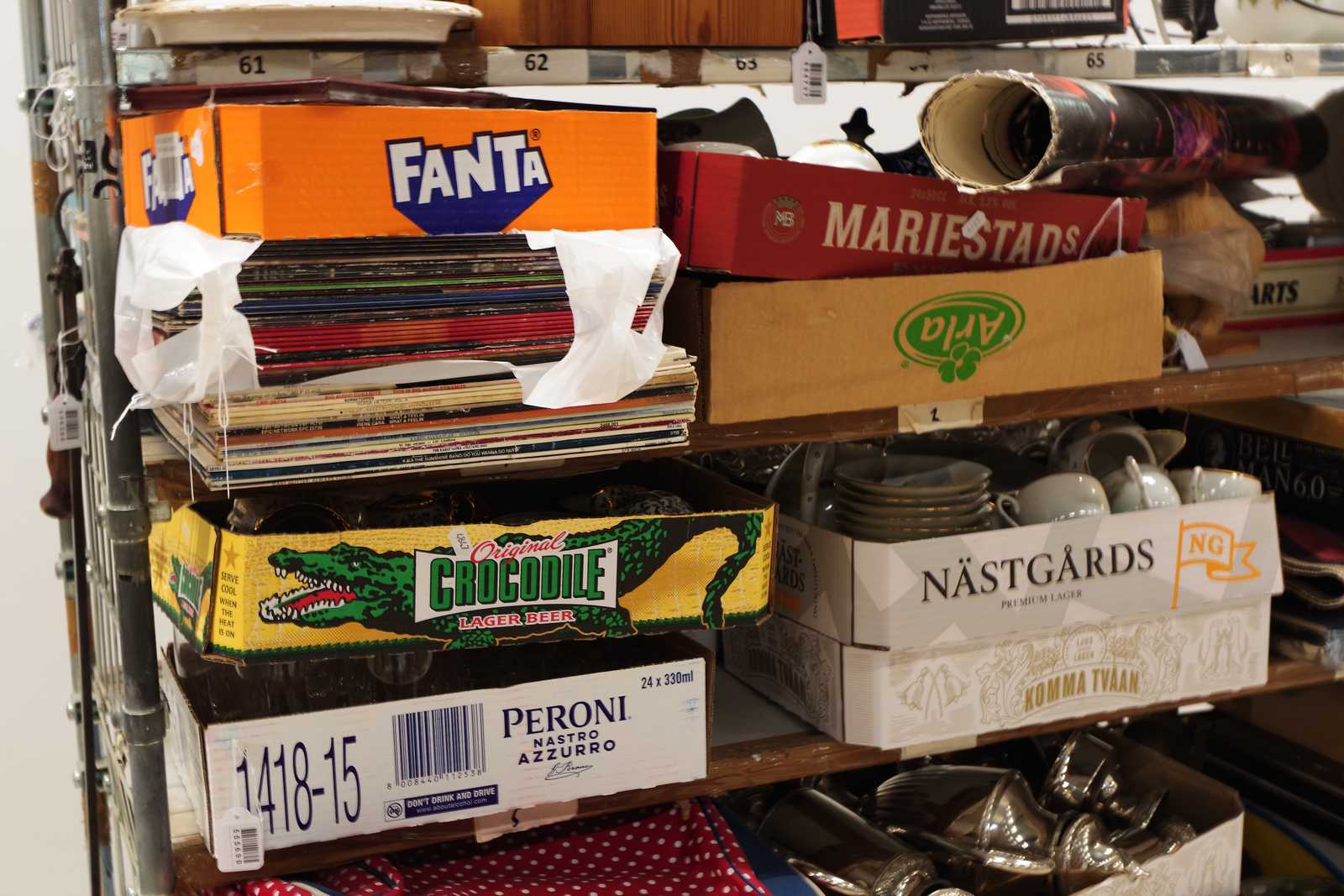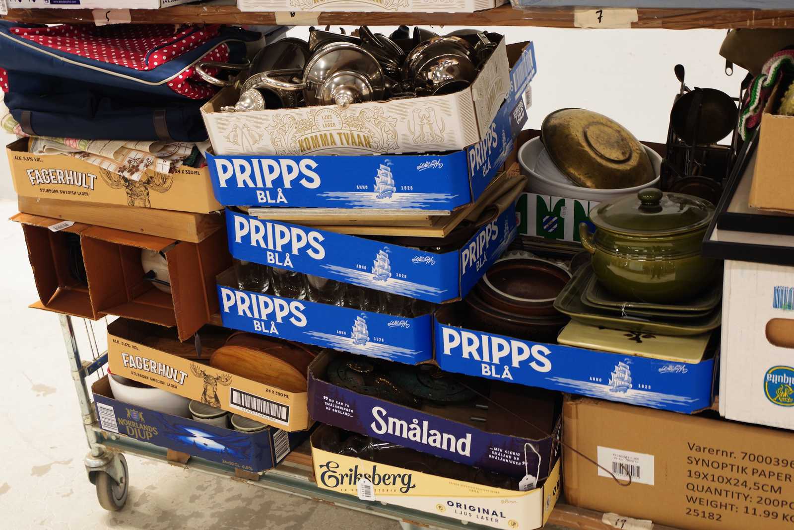 Parti OSÅLT GODS från tidigare auktioner. Säljes till förmån för barncancerfonden. Obs! Köparen måste ta hela partiet. (skador kan förekomma, vagnen ingår ej)