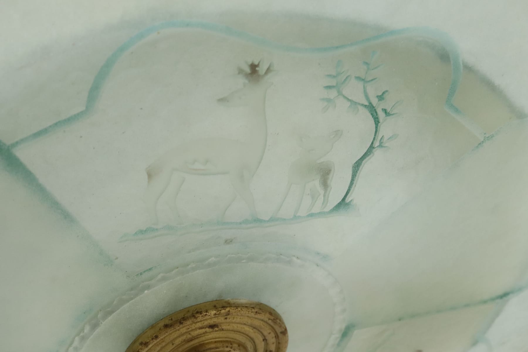 Taklampa, råglas, plafond, med hjortdekor, Swedish modern, 1940-tal.