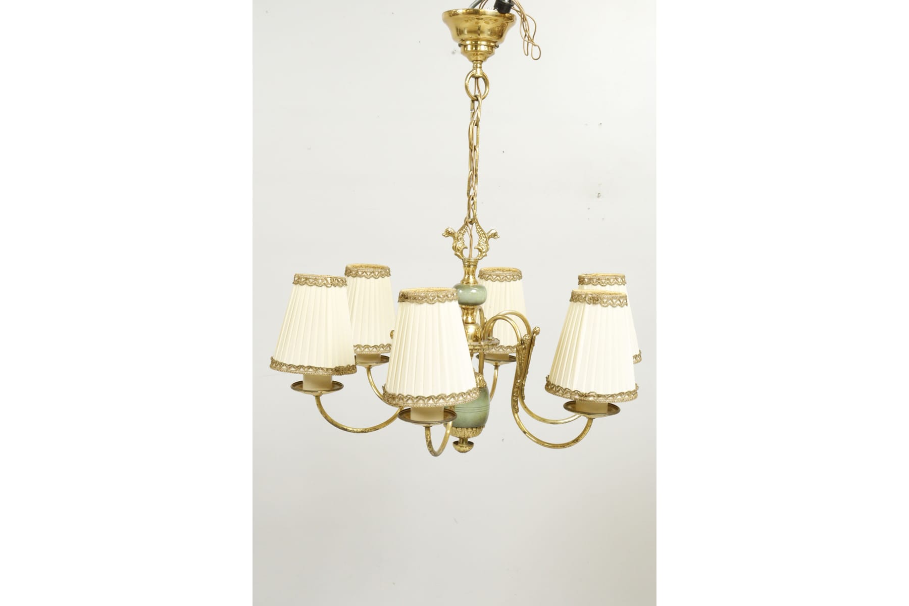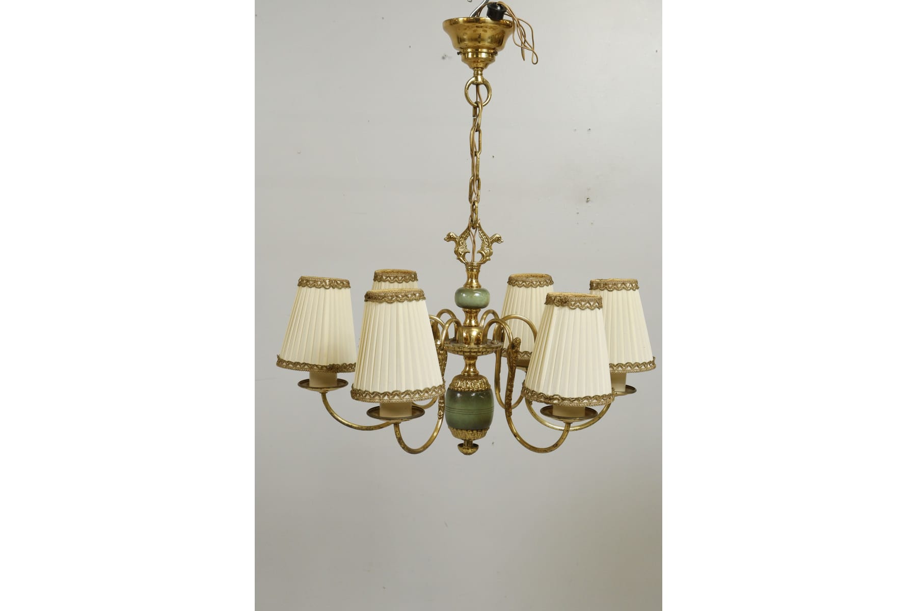 Taklampa, 6-armad, mässing med grön sten