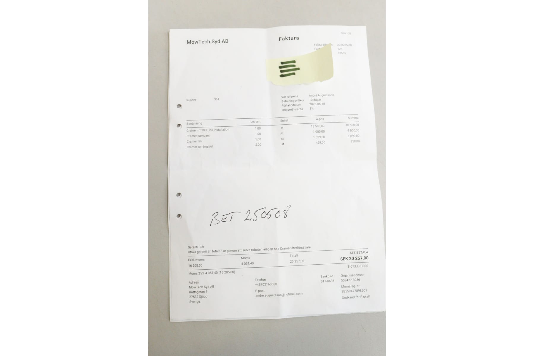 Bilder Robotgräsklippare, Cramer rm1000, årsmodell 2025, med tak