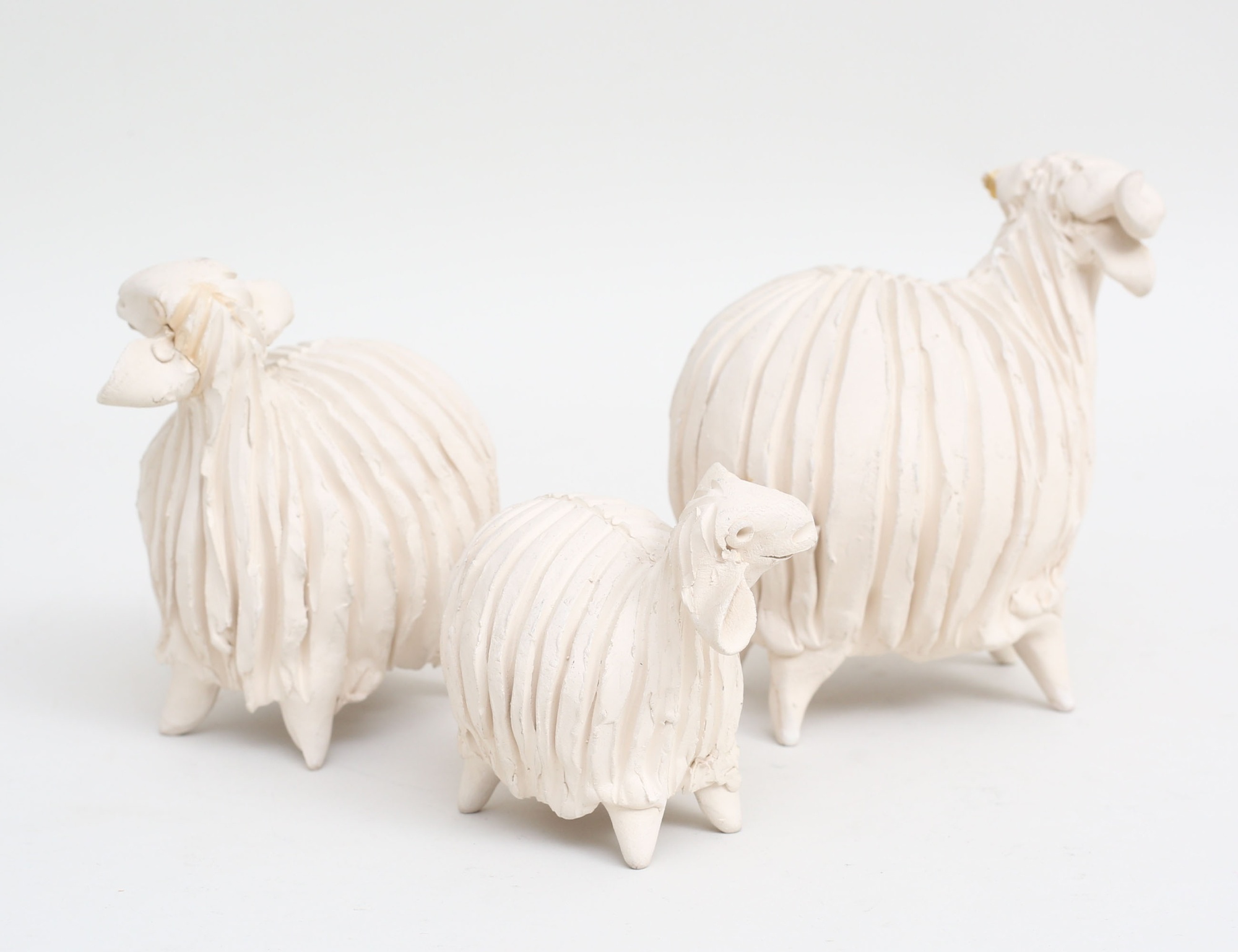 i form av får, bagge samt lamm, lergods, höjd 8-13 (ett horn samt ett öra med lagning) (3)
