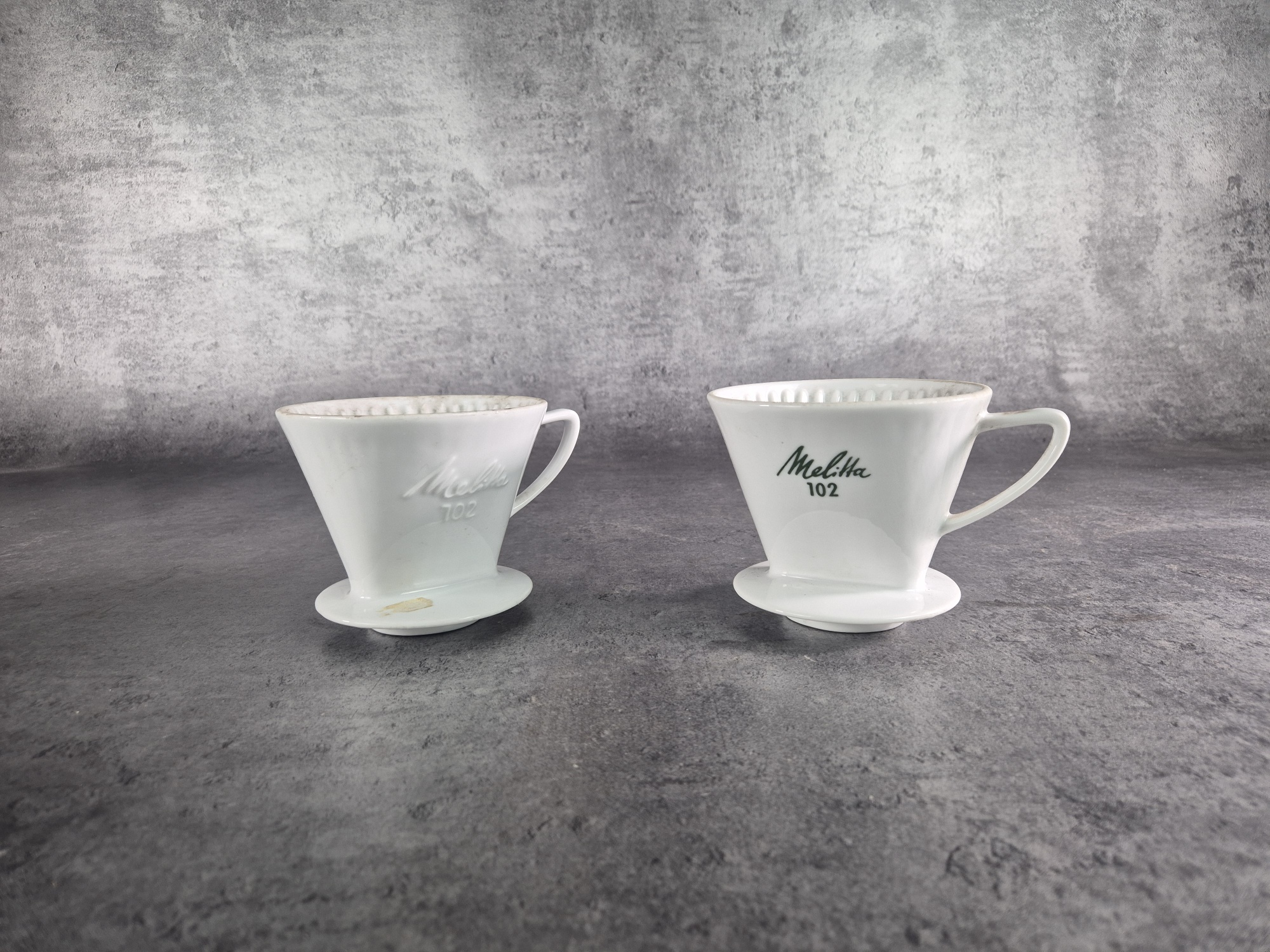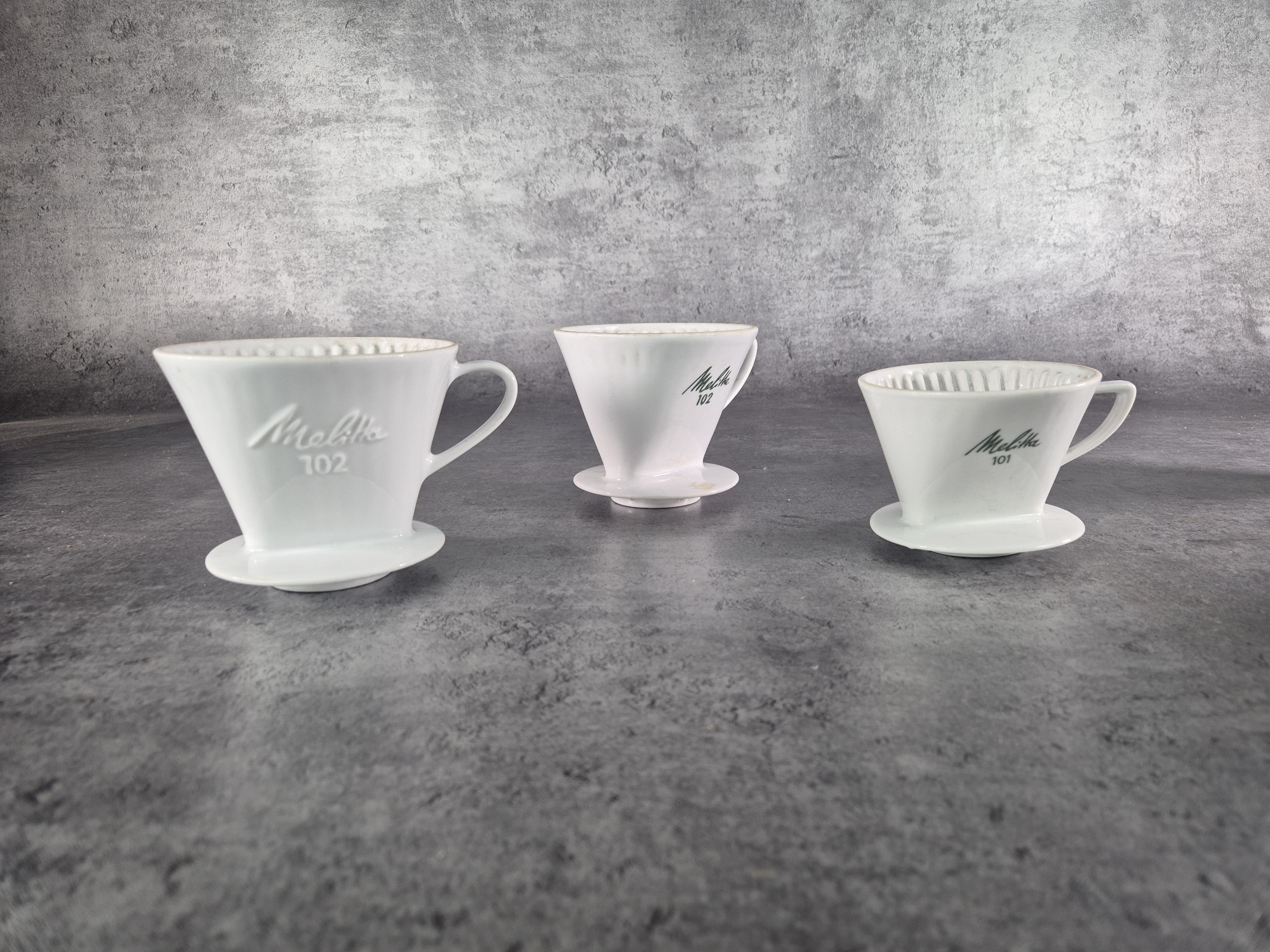 Parti kaffefilterhållare, Melitta. Porslin.