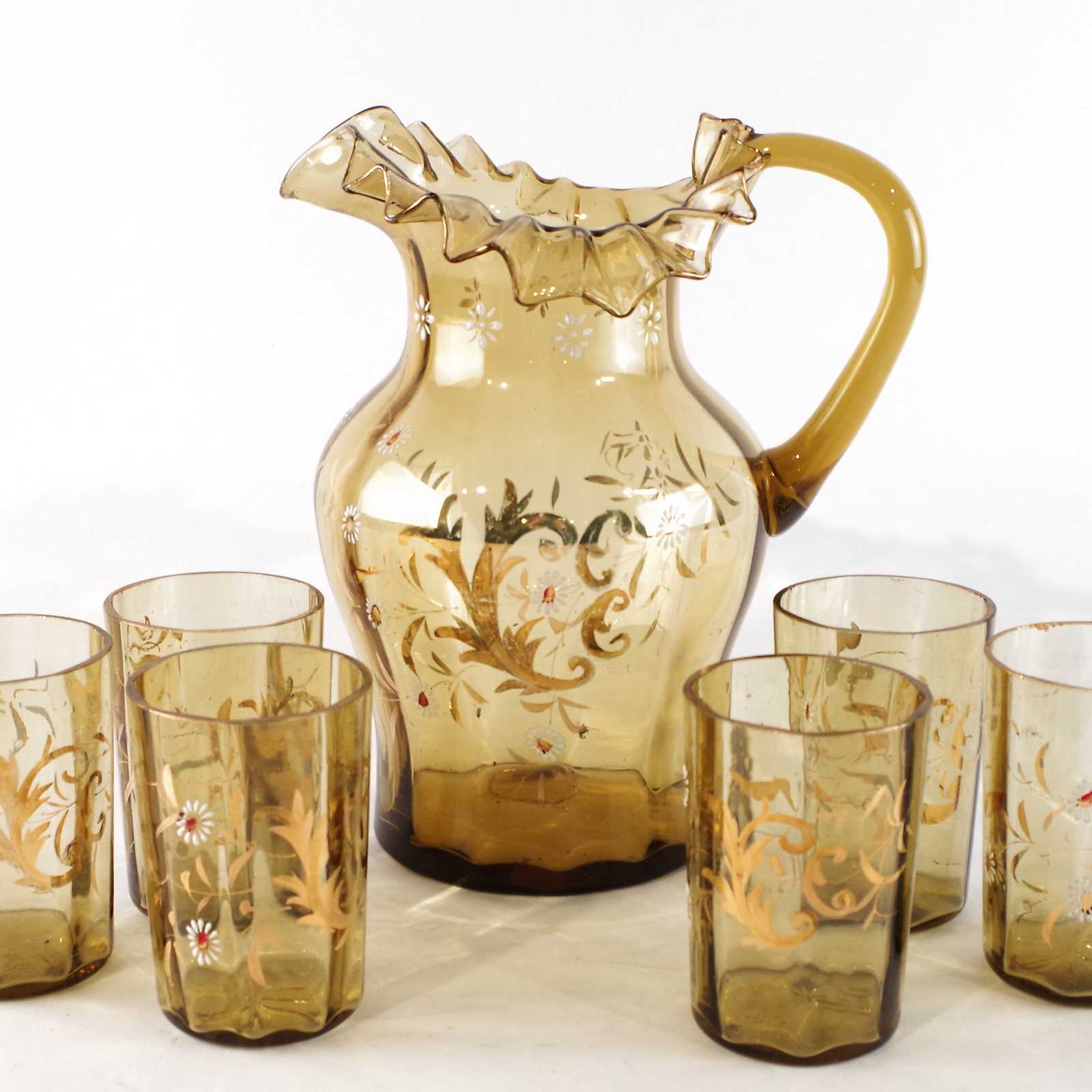 KANNA och GLAS 6st, handmålad emaljdekor. H: 23,5cm kanna