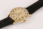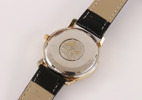 Automat. Kronometer. Guld på stål. Armband i läder.