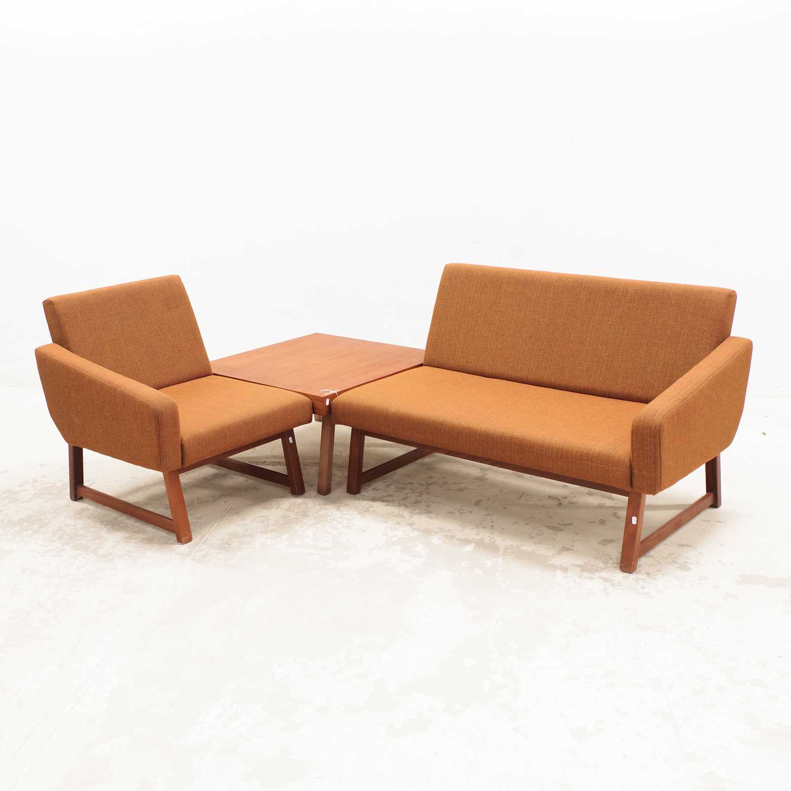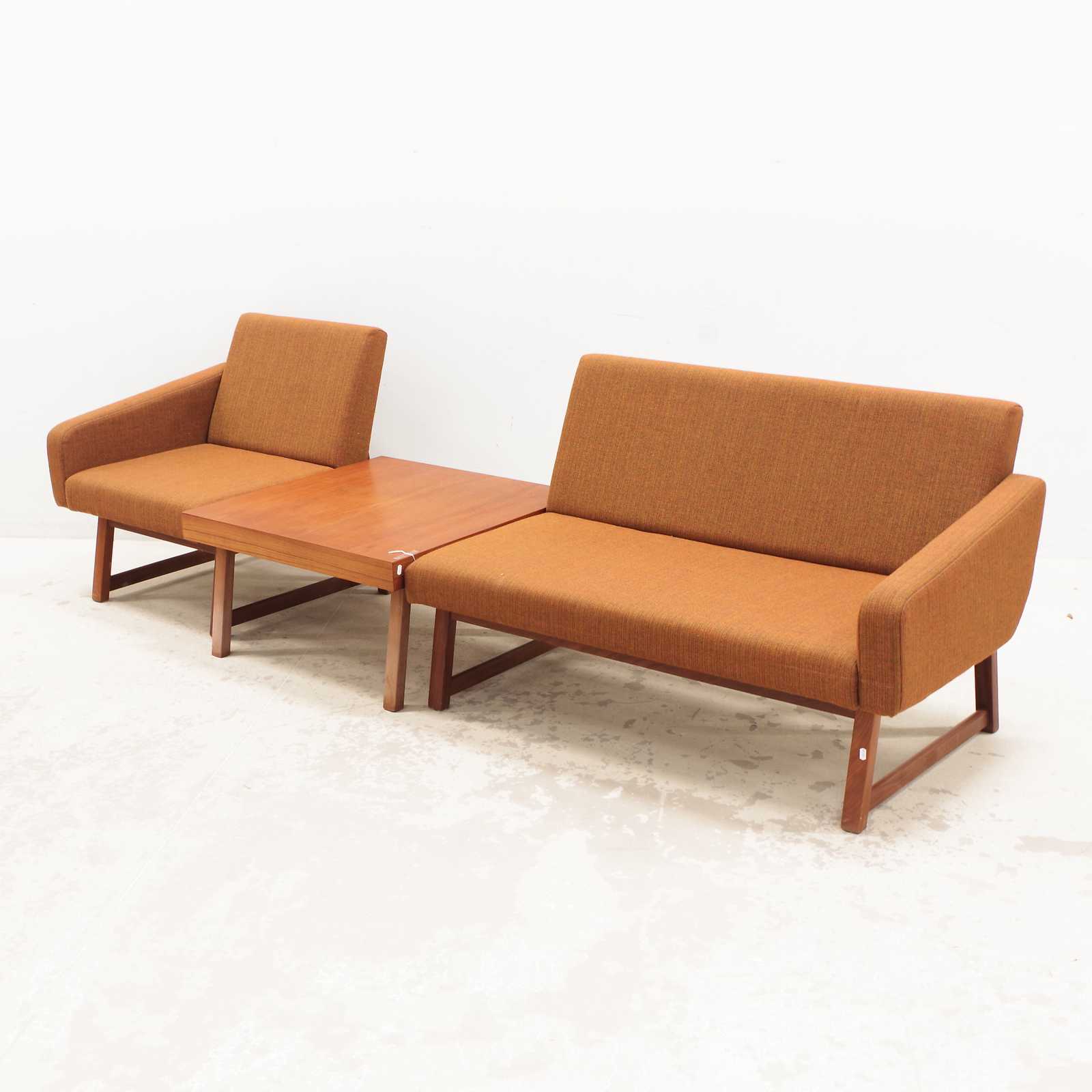 Bilder MODULSOFFA, 3 delar, 1900-talets mitt, teak, bord H: 37x 71x 71cm, B: 180cm utan bord