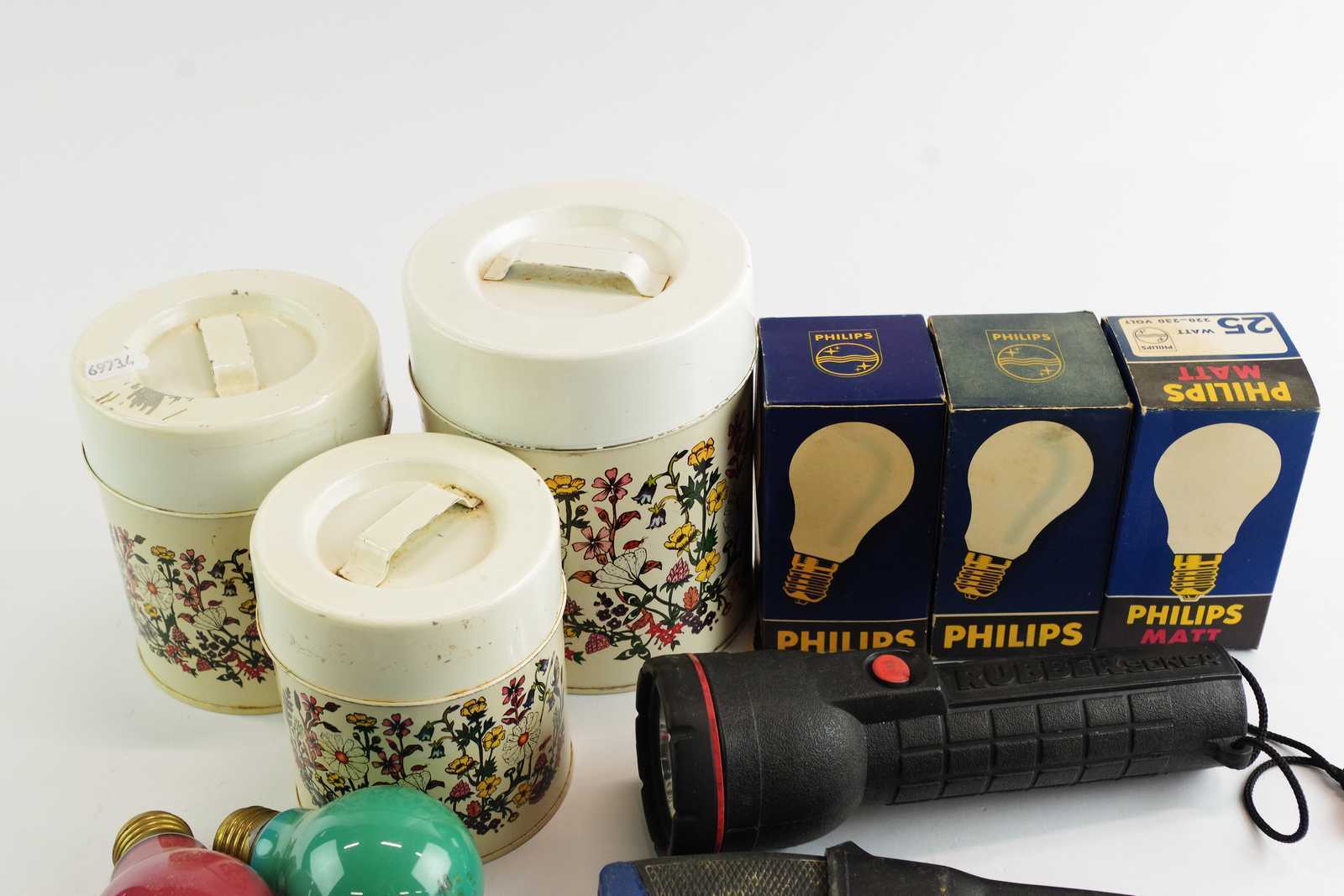 Bilder PLÅTBURKAR, FICKLAMPA, GLÖDLAMPOR & KNIVAR (bruksslitage)