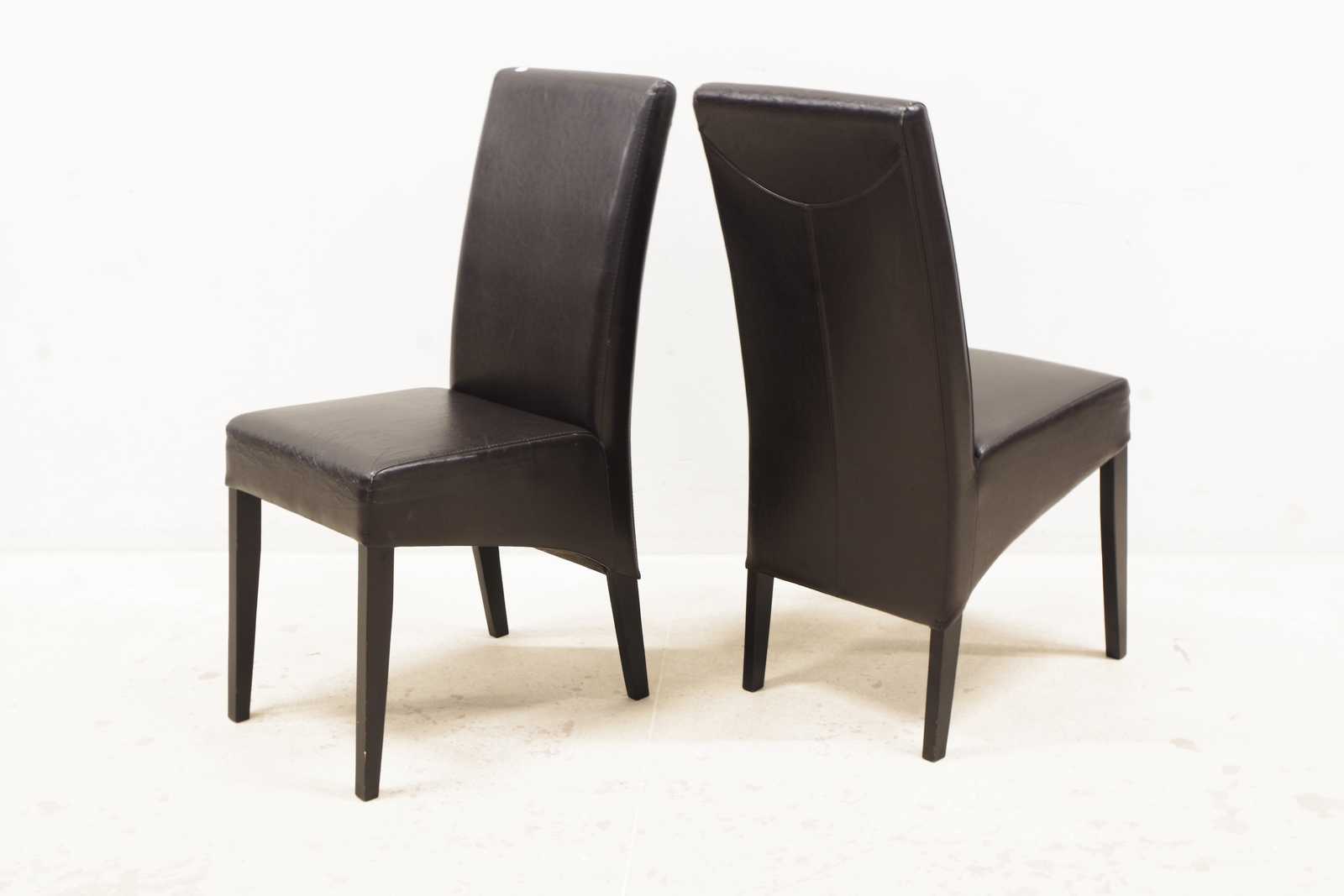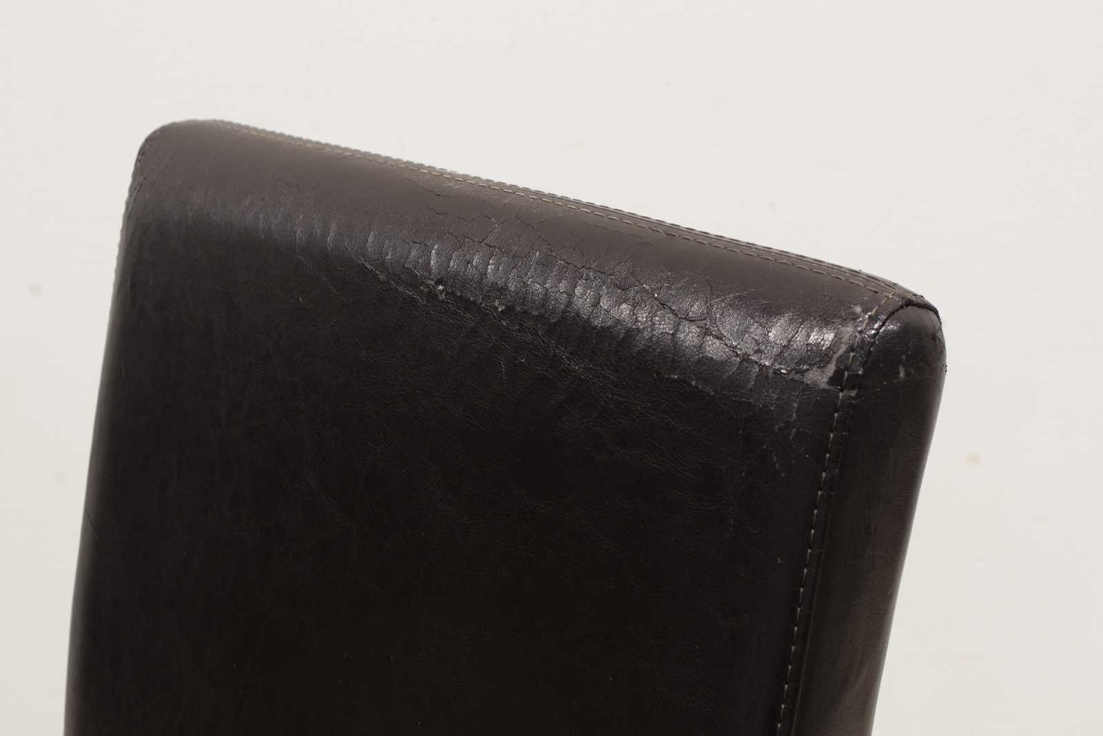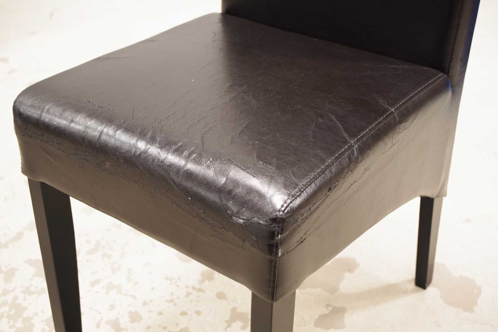 Auktioner MATGRUPP Bohus, Norge, 8st stolar i konstskinn & bord med iläggsskiva, H: 75x 90x 180cm + ilägg: 50cm (bruksslitage, skadad klädsel)