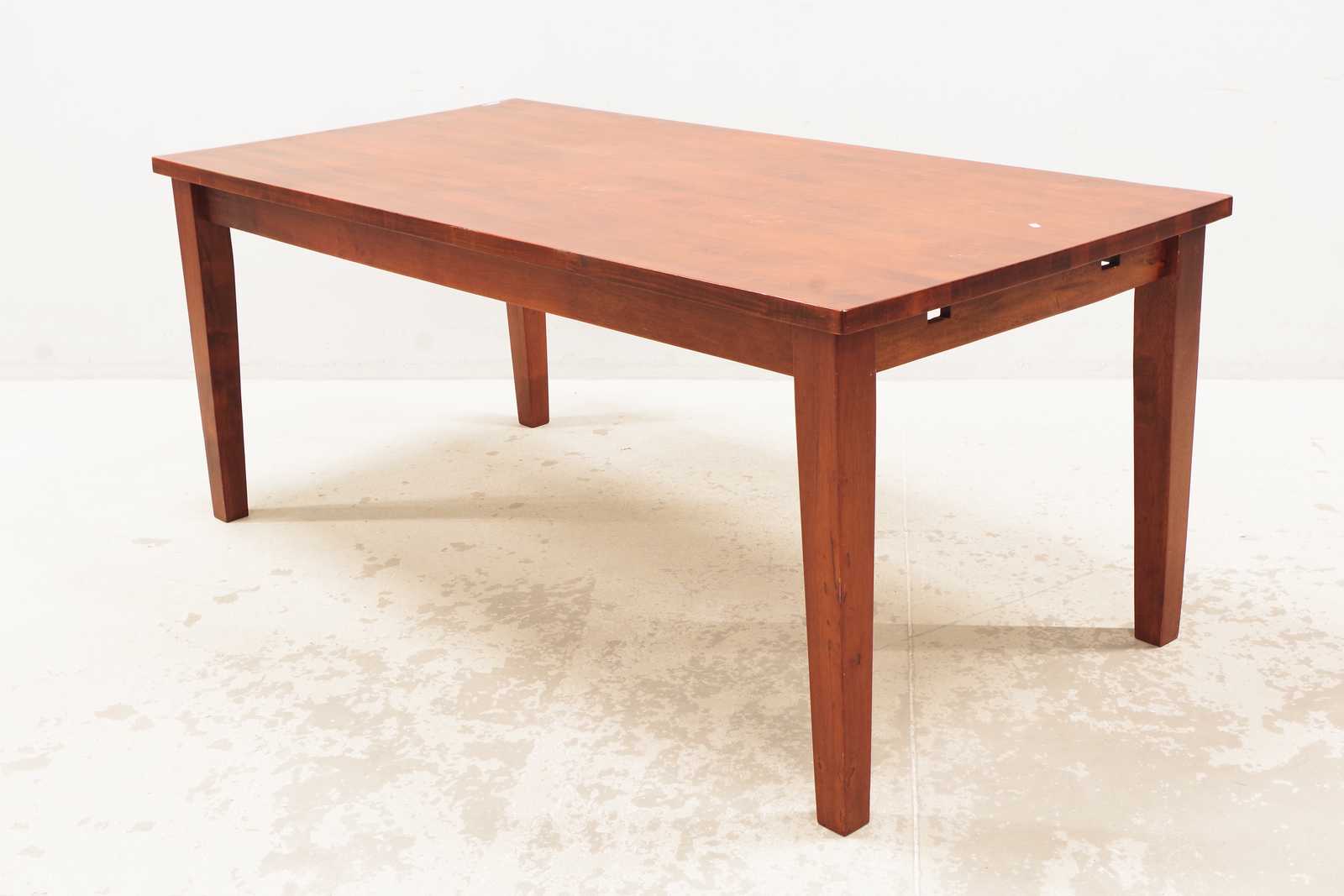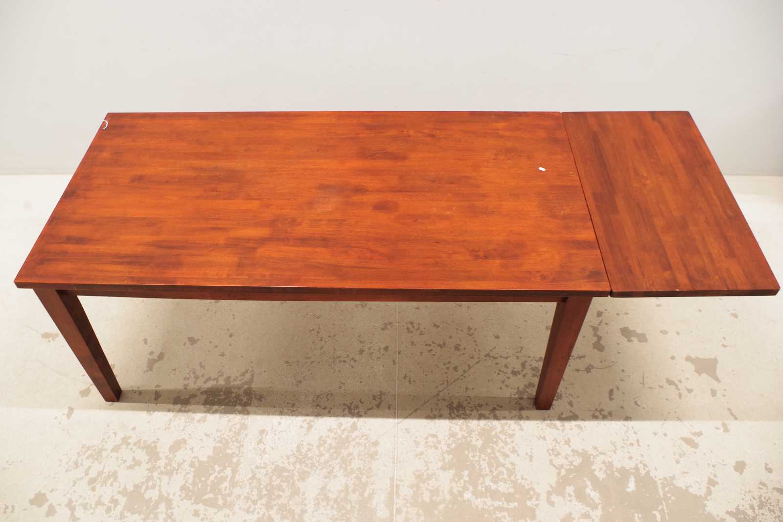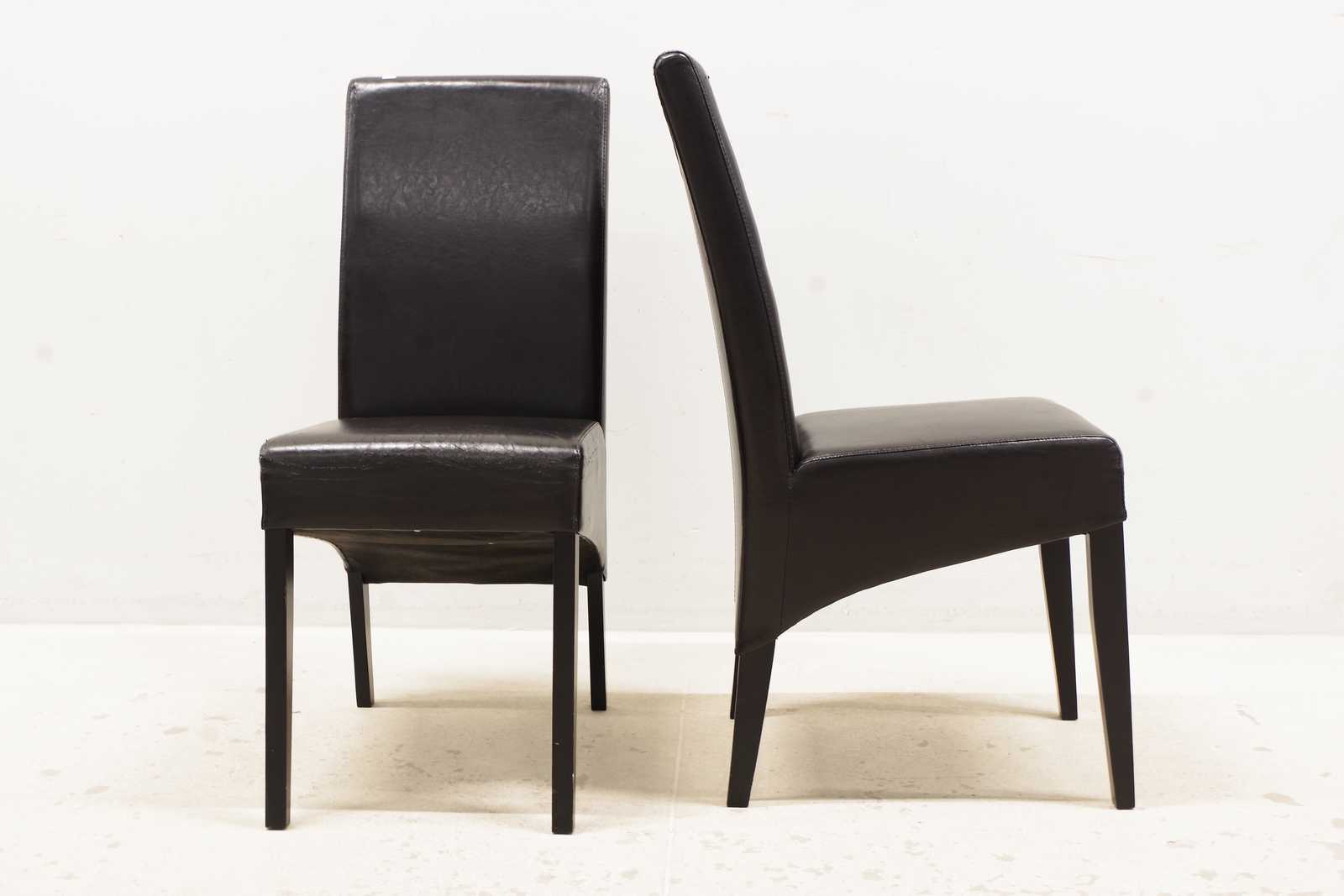Auktioner MATGRUPP Bohus, Norge, 8st stolar i konstskinn & bord med iläggsskiva, H: 75x 90x 180cm + ilägg: 50cm (bruksslitage, skadad klädsel)