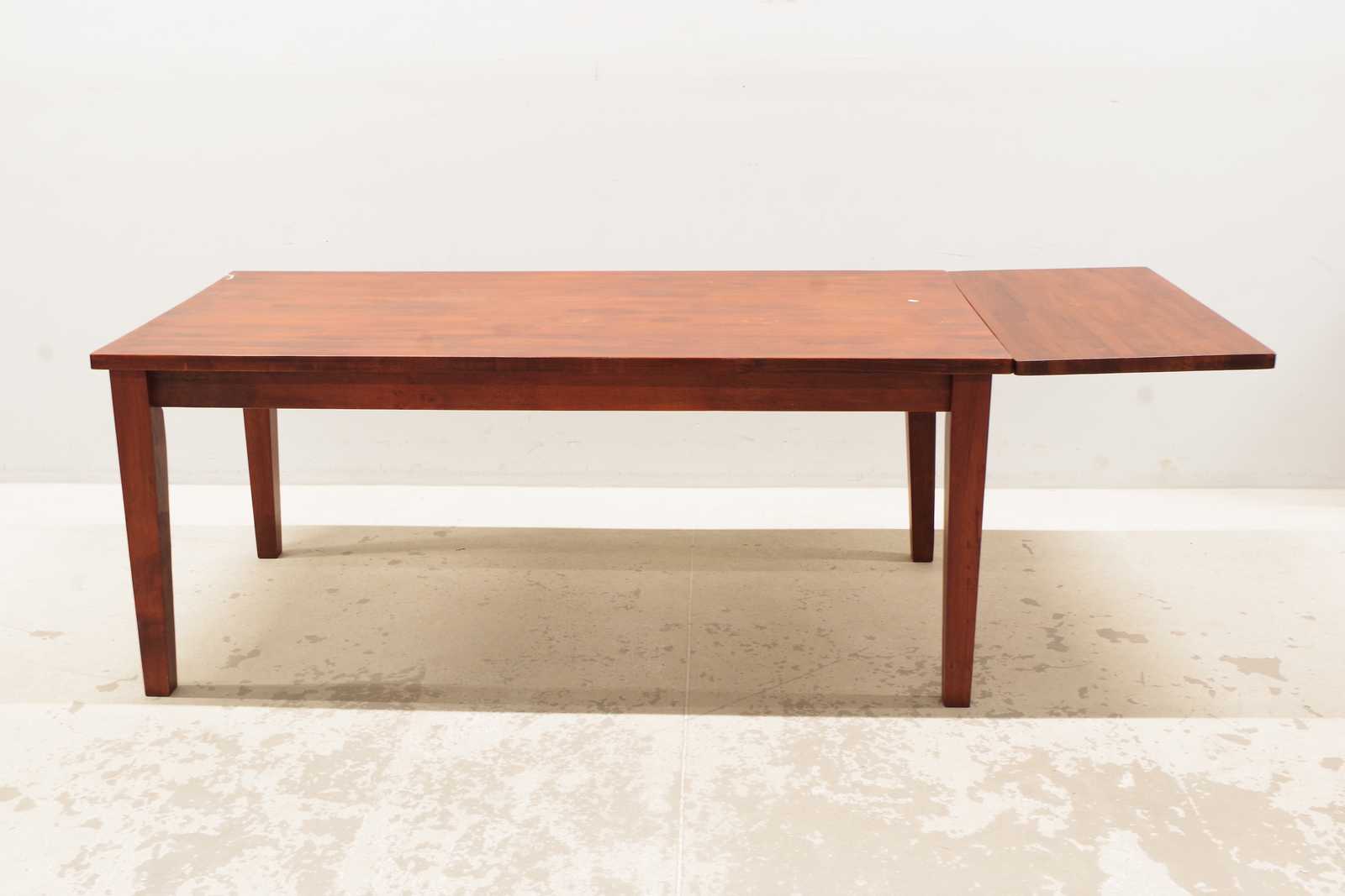 MATGRUPP Bohus, Norge, 8st stolar i konstskinn & bord med iläggsskiva, H: 75x 90x 180cm + ilägg: 50cm (bruksslitage, skadad klädsel)