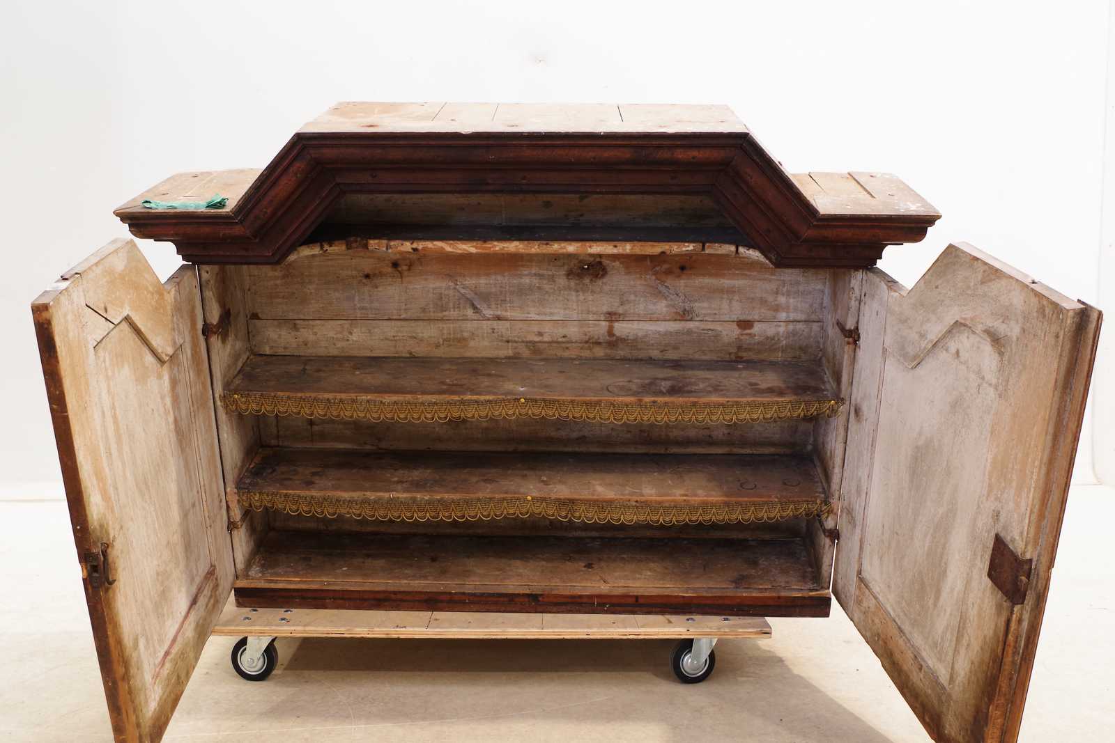 ALLMOGESKÅP 1800-tal. H:210x 130x 53cm. skador, slitage, maskstunget.