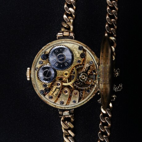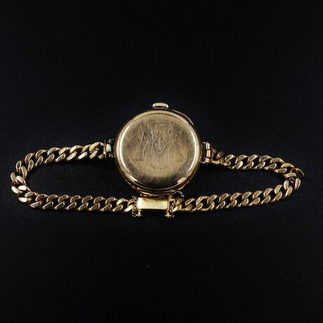 Auktioner Guld, Silver & Smycken Damarmbandsur, Buren, guld 14 K m. D = 24 mm, länk guld 18 K, tot V = 21,4 g