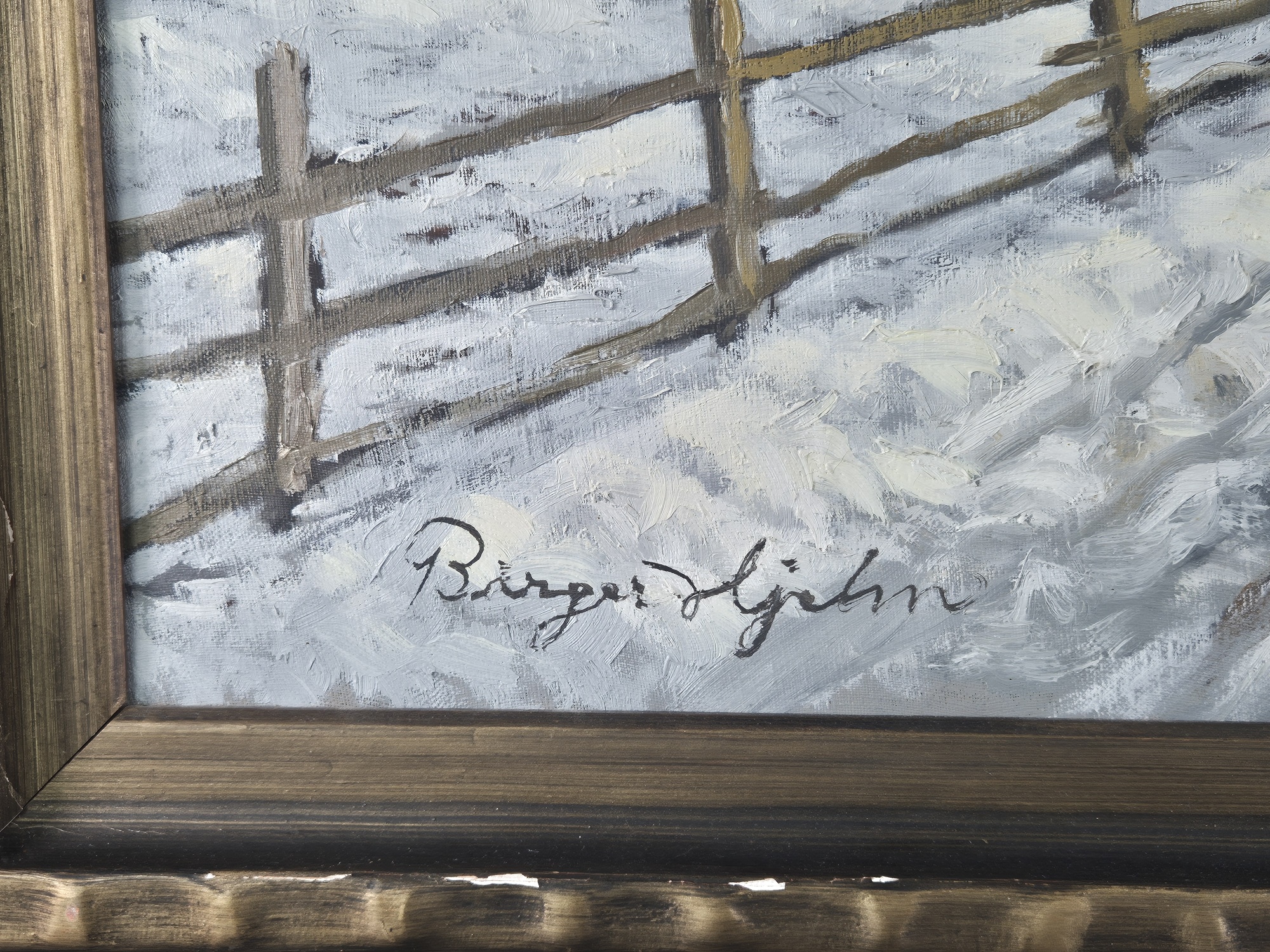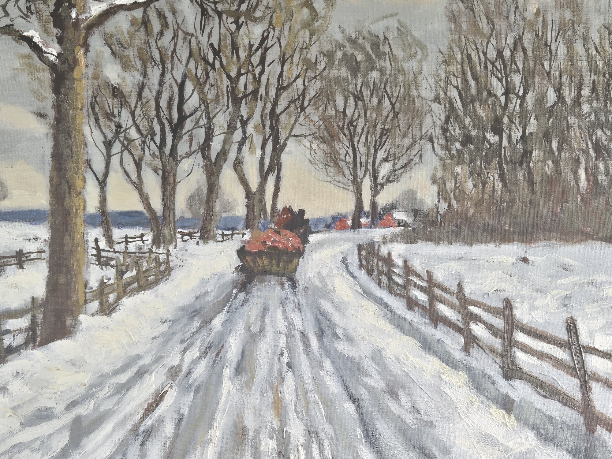 Vinterlandskap vid Göta Kanal. Ca 78x110cm.