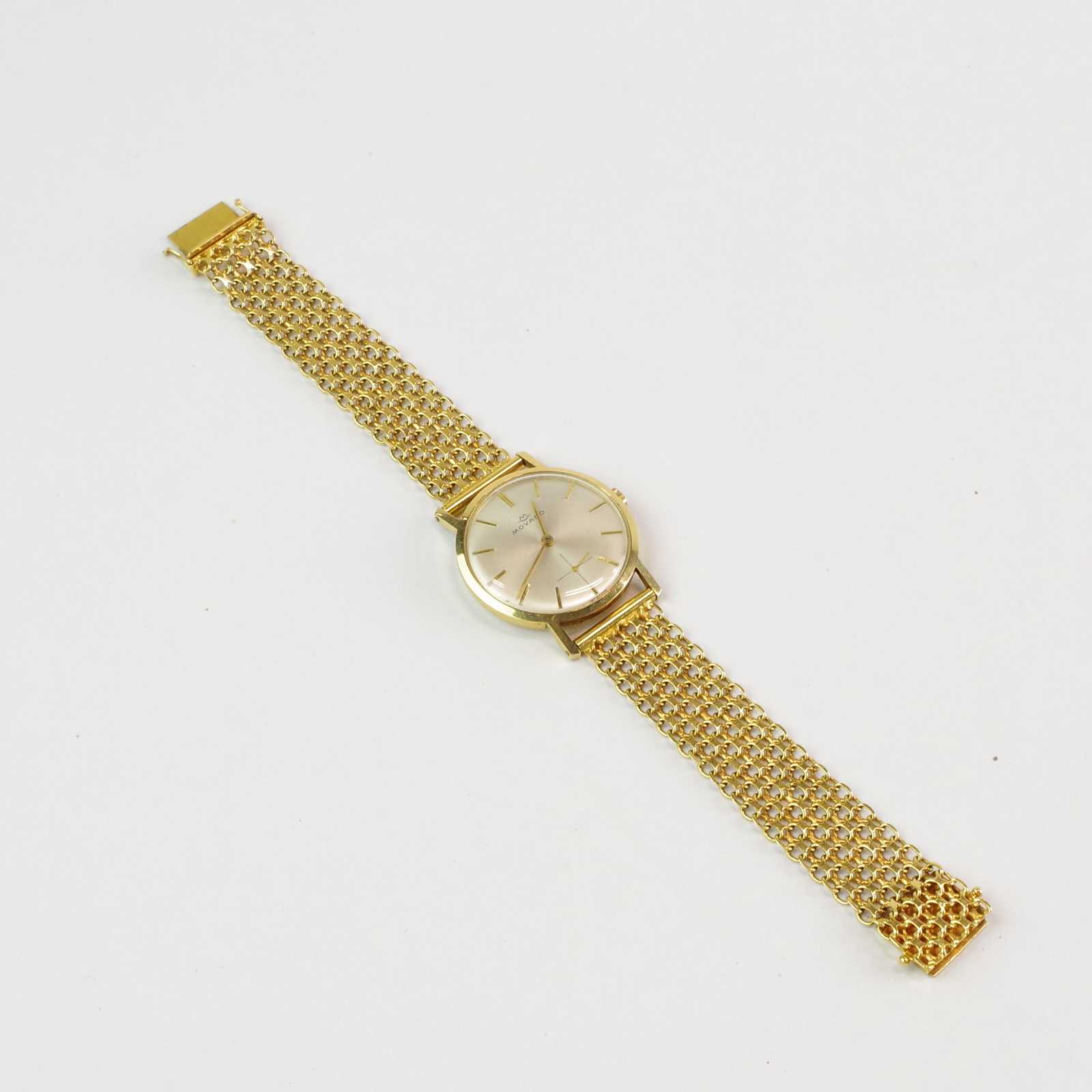 Auktioner Guld, Silver & Smycken ARMBANDSUR Movado med X-LÄNK Guld 18K Total V:47,83 g D:33 mm L:20 cm Fungerar (inskription på baksida)
