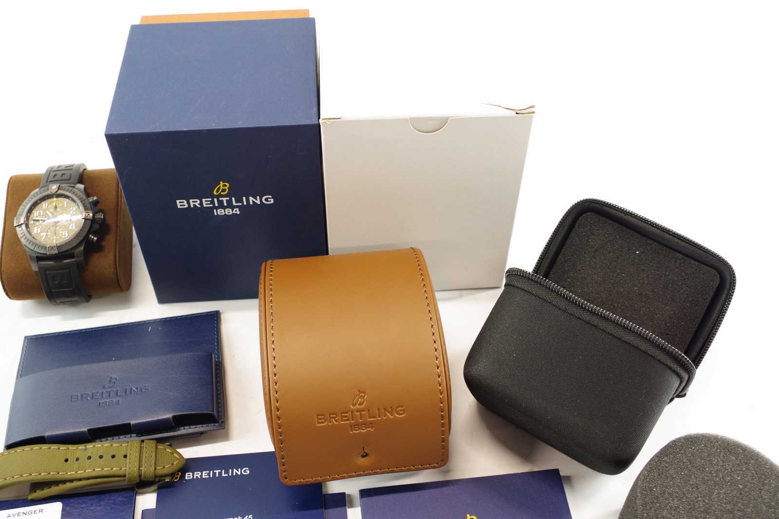 Auktioner ARMBANDSUR Breitling Avenger Chronograf 45 V13317 7031857, ORIGINALARMBAND, CERTIFIKAT & ASKAR