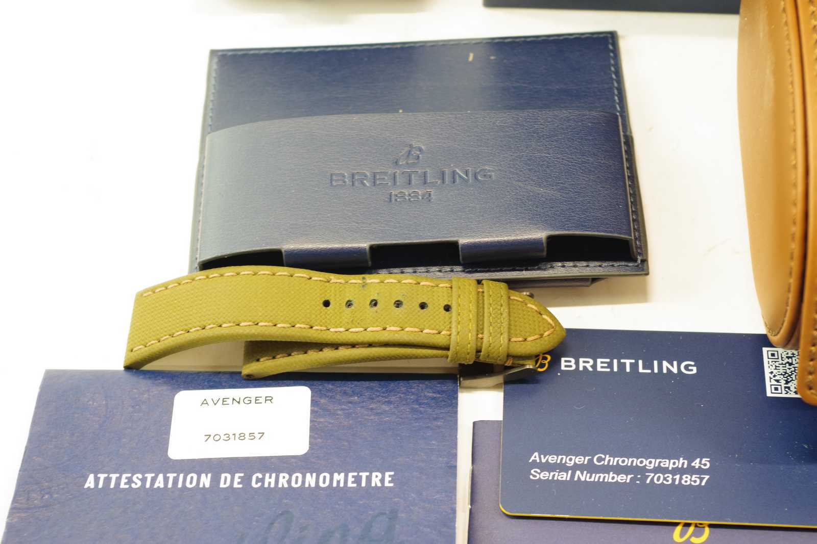ARMBANDSUR Breitling Avenger Chronograf 45 V13317 7031857, ORIGINALARMBAND, CERTIFIKAT & ASKAR