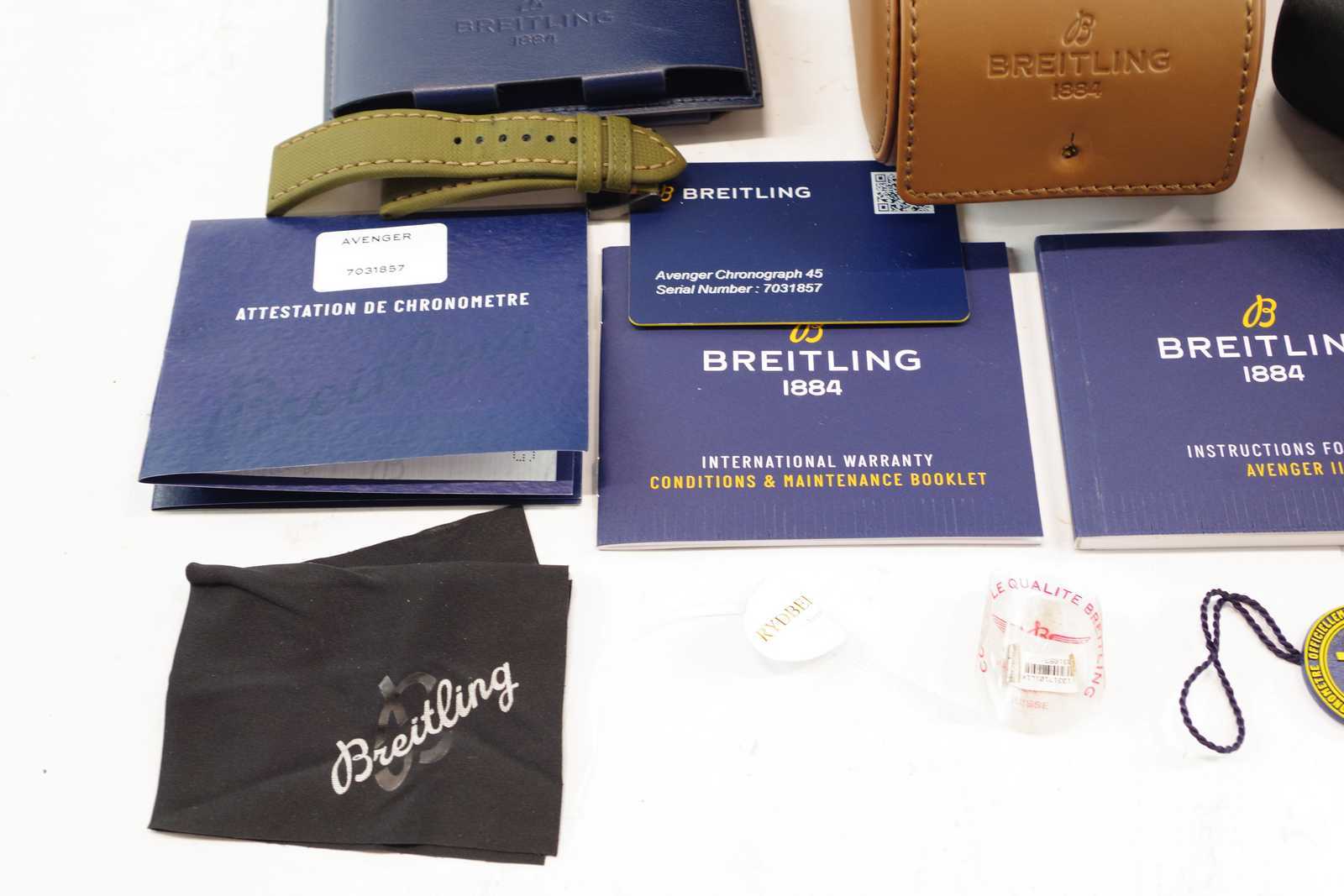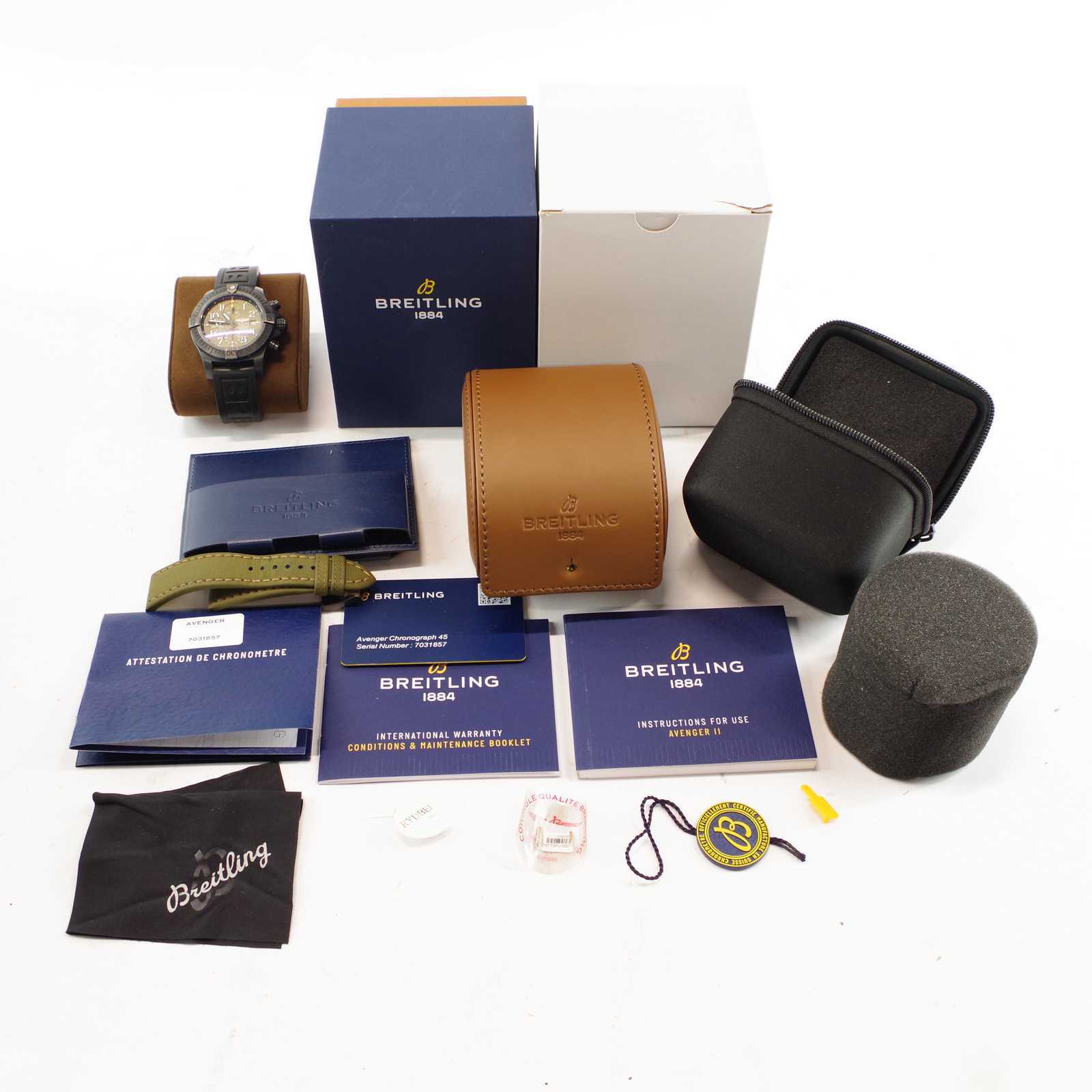 Bilder ARMBANDSUR Breitling Avenger Chronograf 45 V13317 7031857, ORIGINALARMBAND, CERTIFIKAT & ASKAR