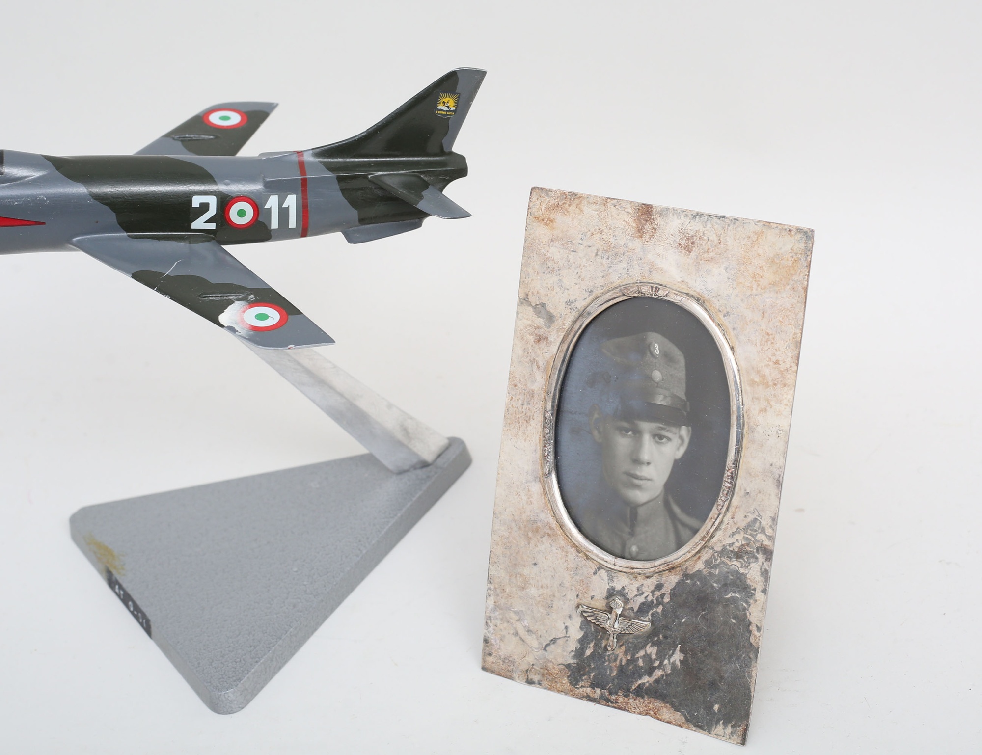 märkt 2 Stormo Caccia, höjd 21 (smärre repor), fotoram nysilver, märkt med flygvapnets emblem, 17x10 (2)