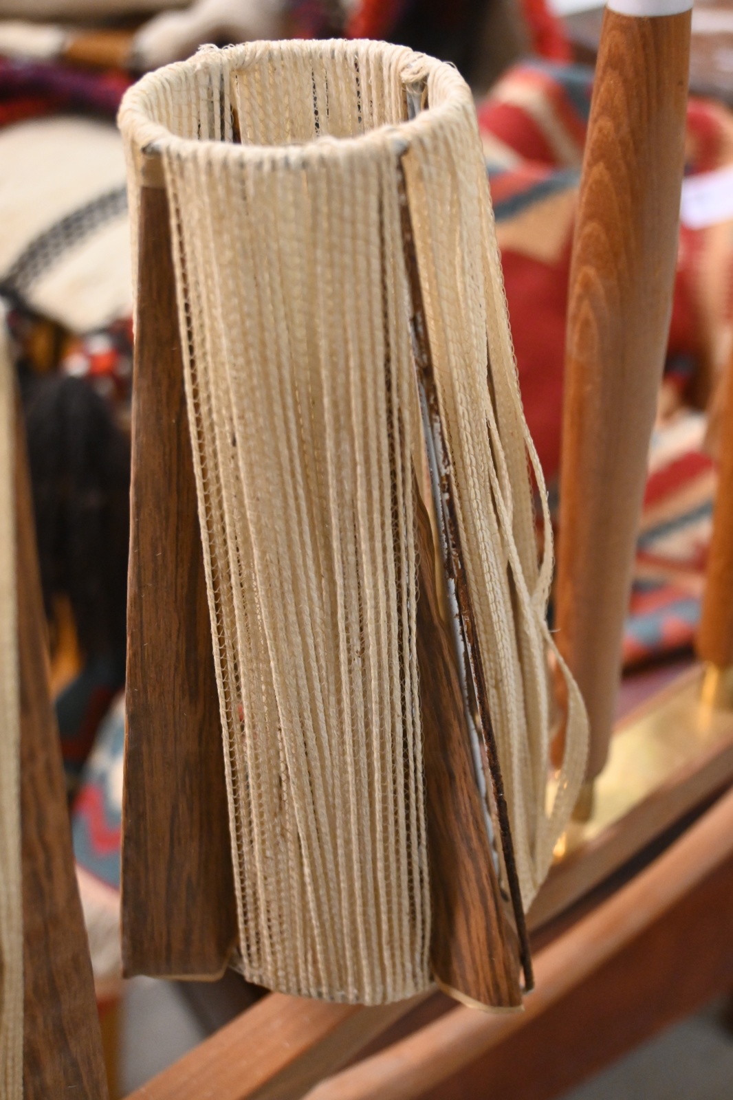 Bilder Taklampa 4-armad i teak 1950/60.tal L.74cm H.67cm (bruksslitage)