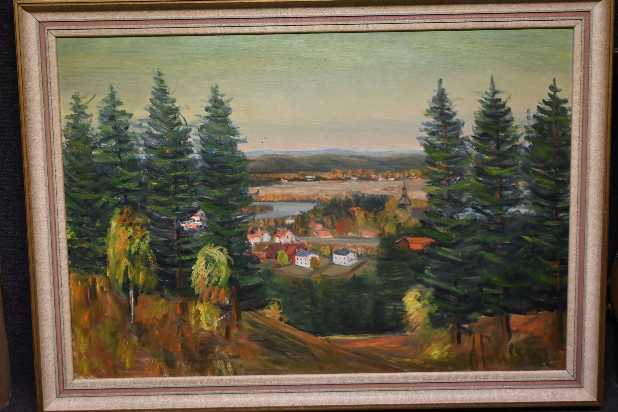 Bilder Tavla, Opd motiv "Vy Över Ekshärad" signerad Paulsen mmr.83x115cm