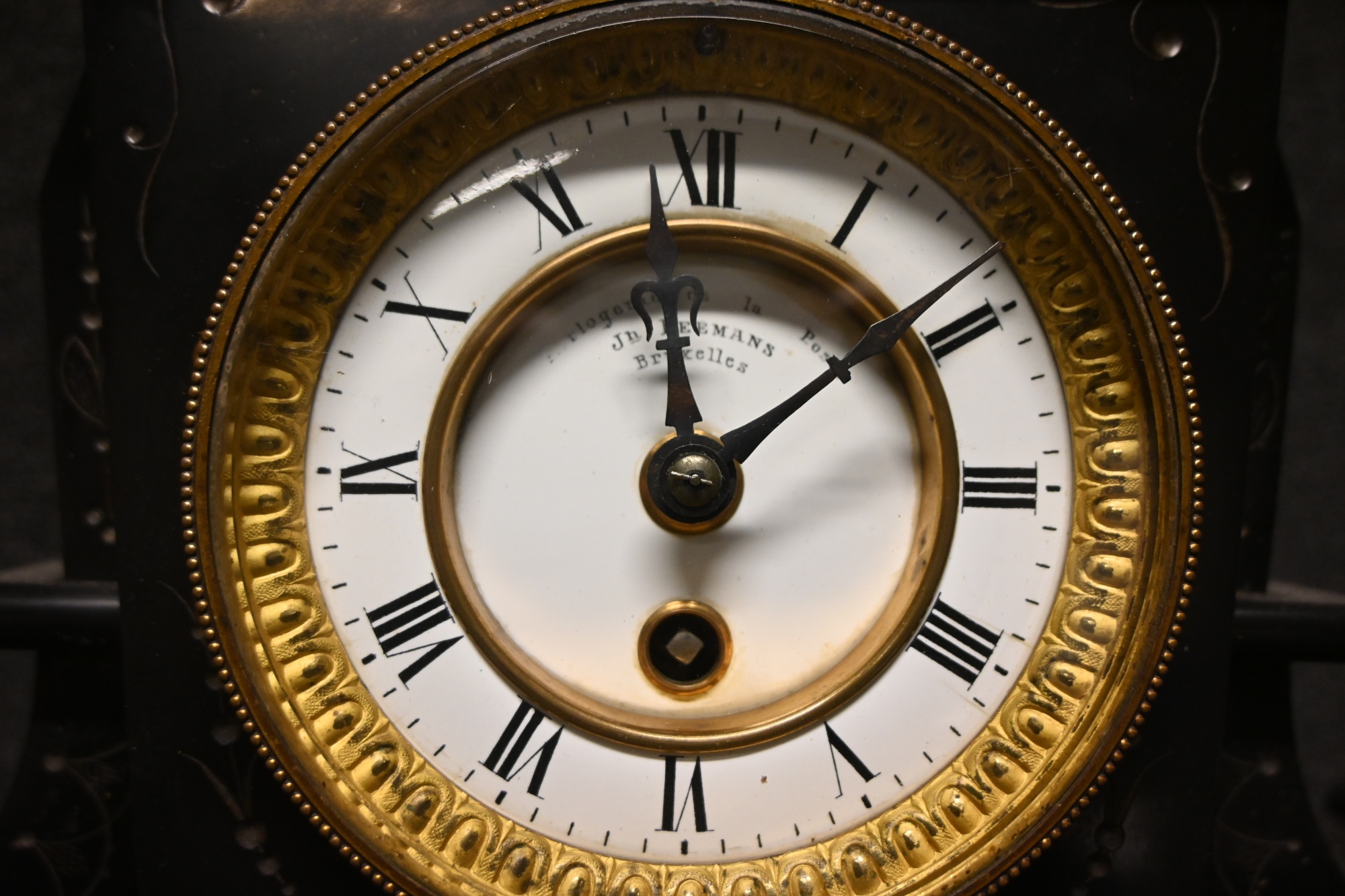 Bilder Bordspendyl i svart sten 1900.tal "Victoriansk stil" JH Leemans Bruxelles H.35cm B.43cm (pendel saknas)