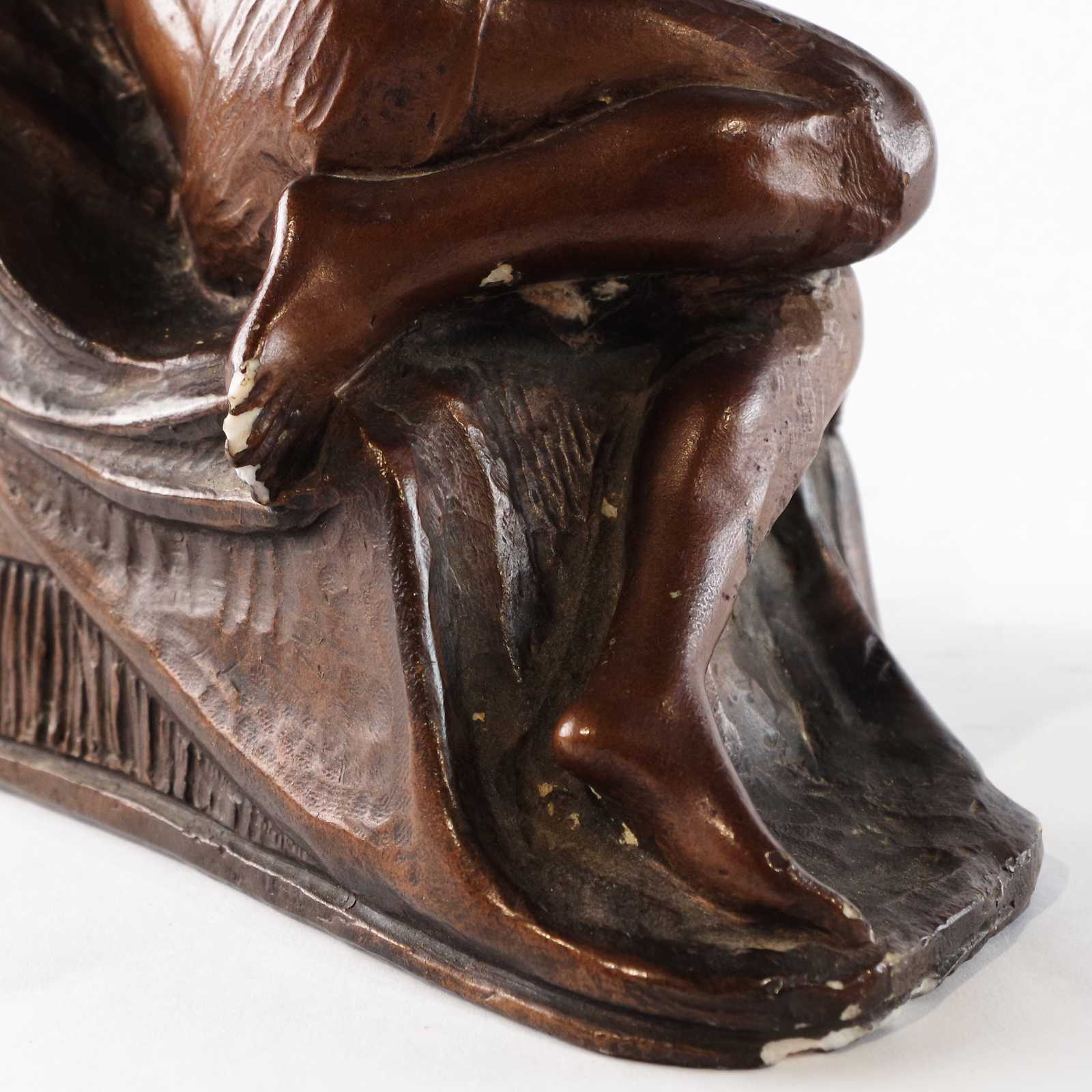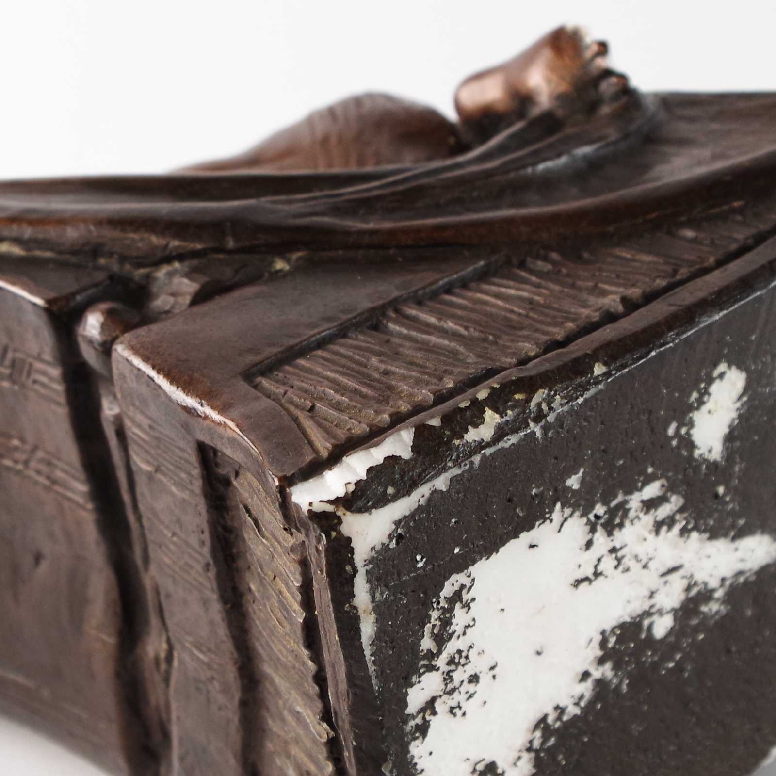 Bilder BOKSTÖD, 2st, sten, kopparfärgade. H: ca 21cm högsta. OBS skador/nagg finns.