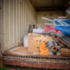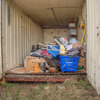 Containern måste lastas med kranbil då det inte går att köra på gräset. Innehåll enligt bilder medföljer inte.