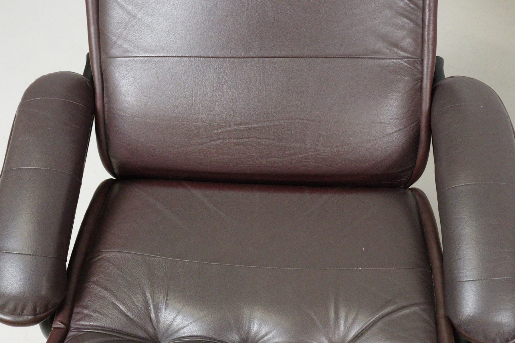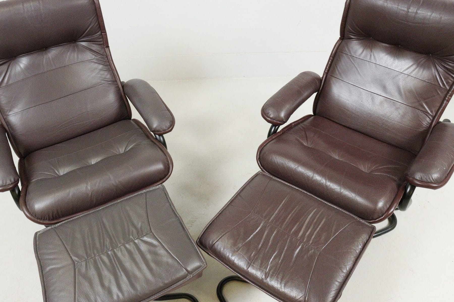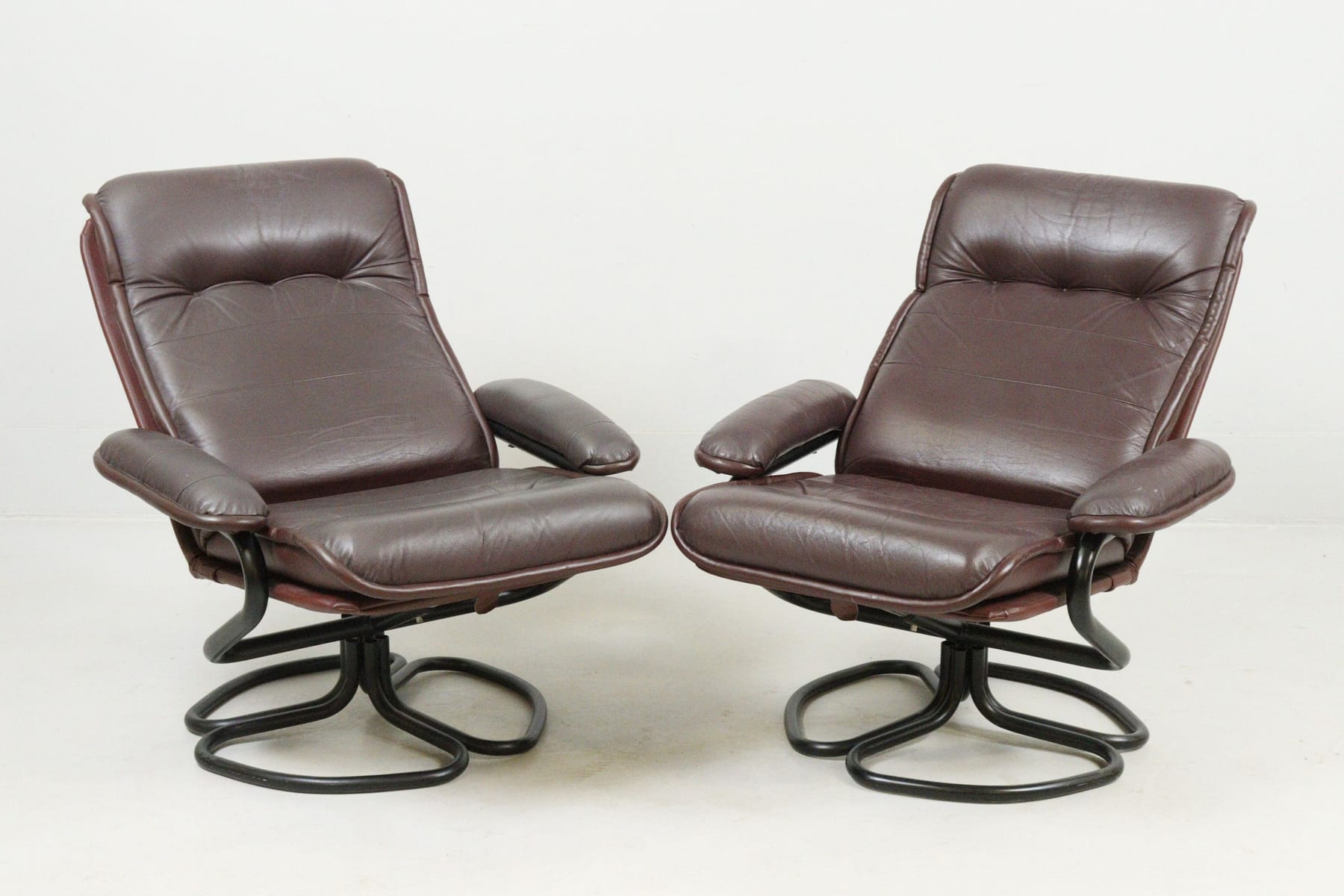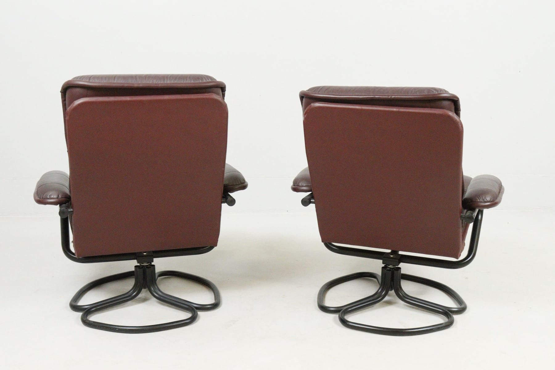 Skinnfåtöljer, 1 par, med fotpallar, snurr- och fällfuktion