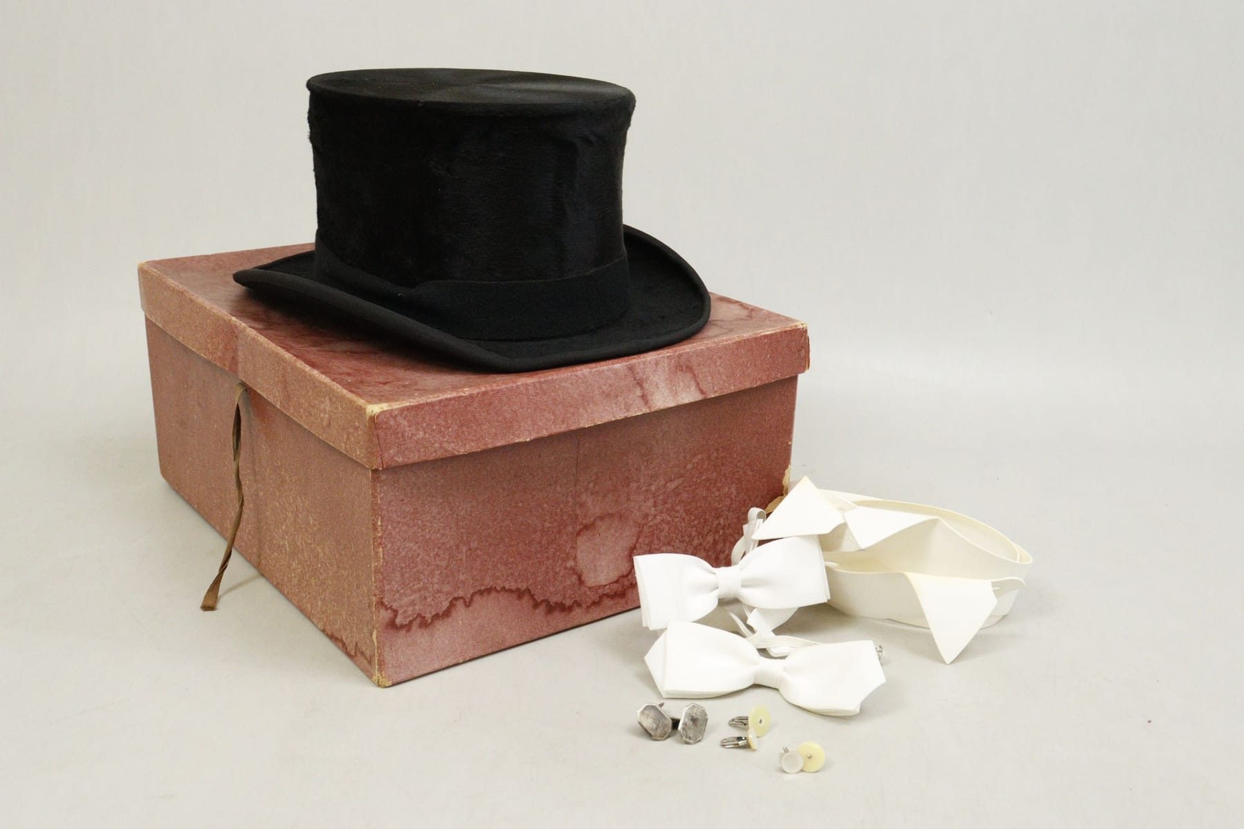 Bilder Hög hatt med hattask, flugor och manschettknappar