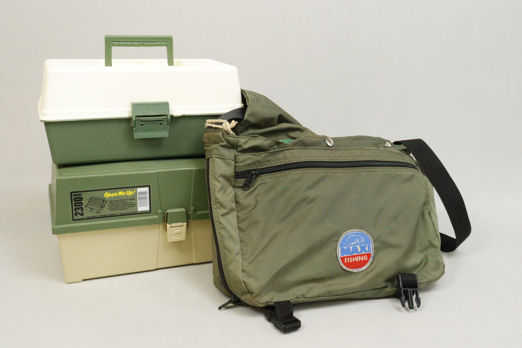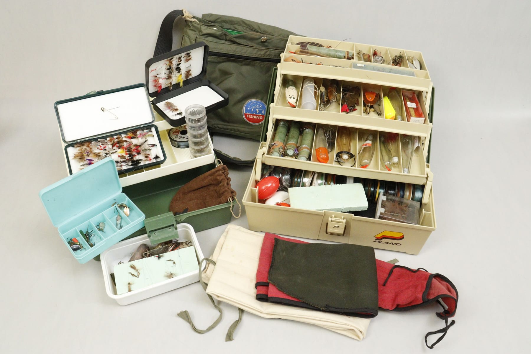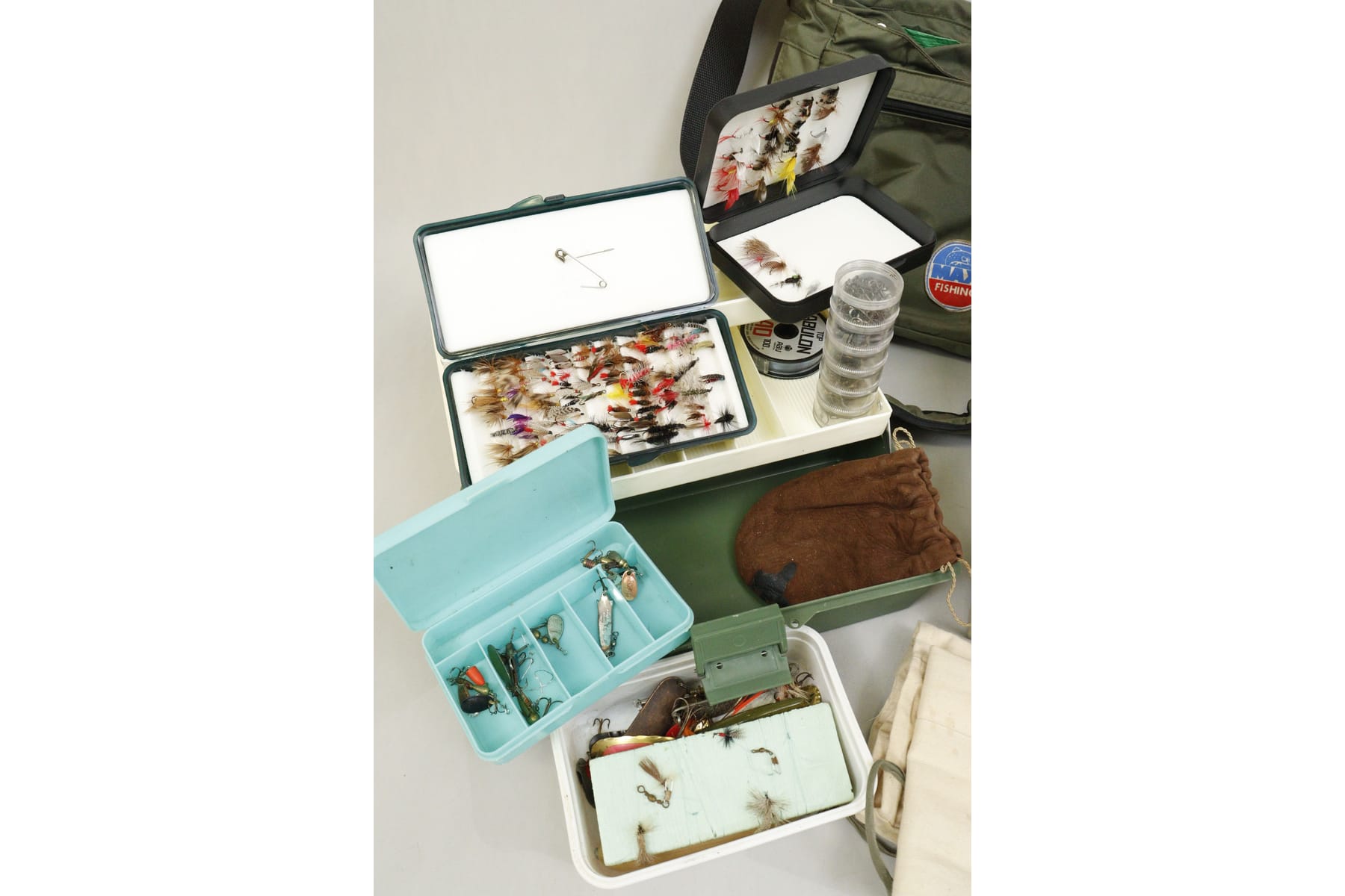 Spinnfiskeutrustning i 2 lådor och väska