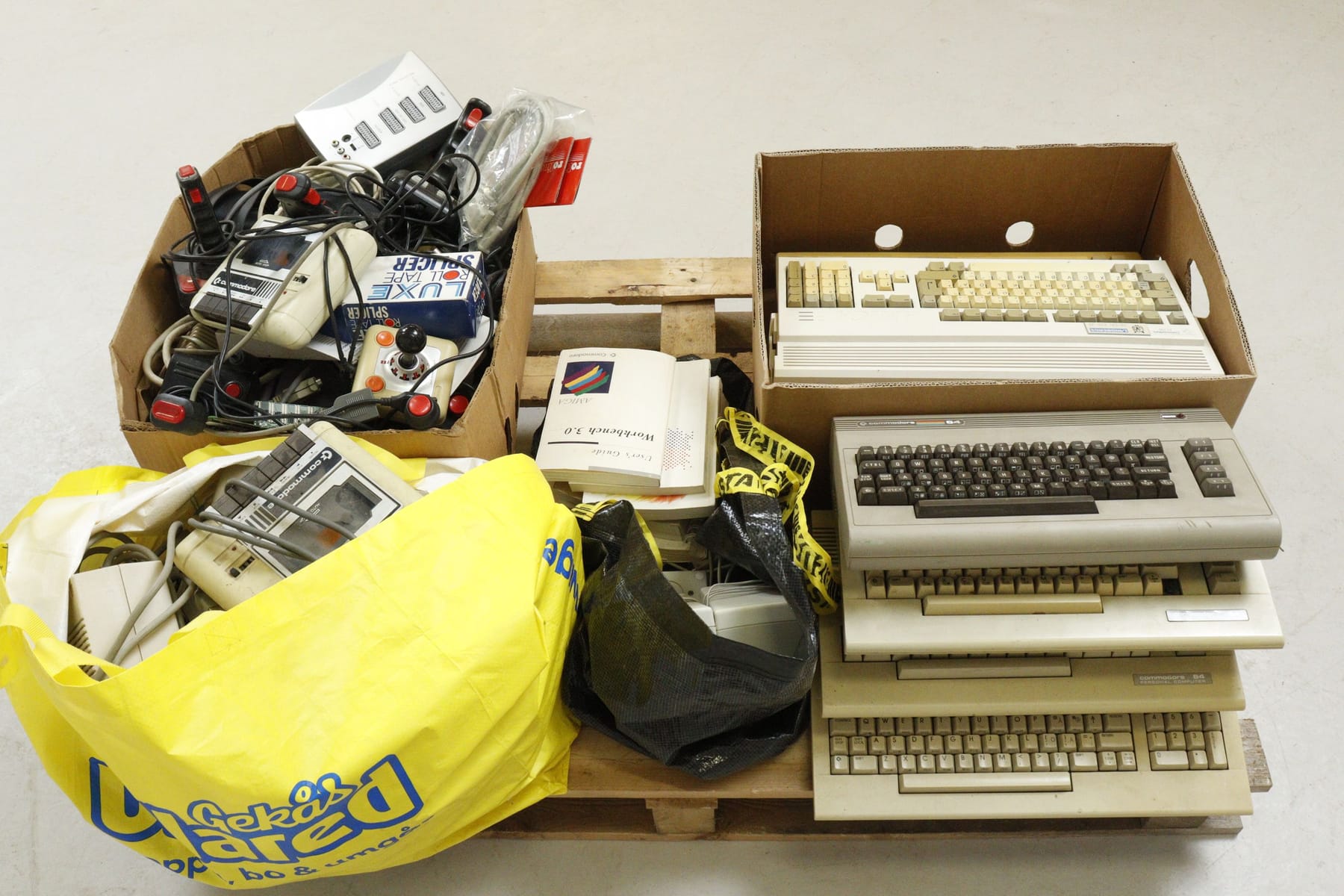 Bilder Datorer, Commodore 64, delar till dataspel, joysticks mm