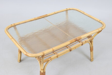 Bilder Soffbord, bambu och glas, 1900-talets mitt, 116x59x56 cm (BxDxH)