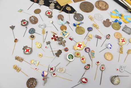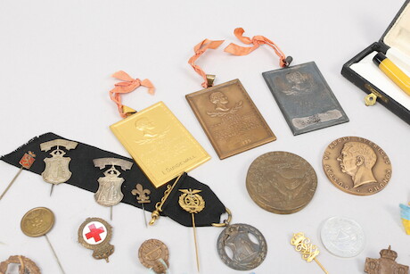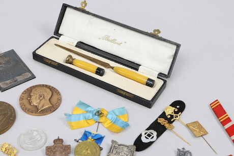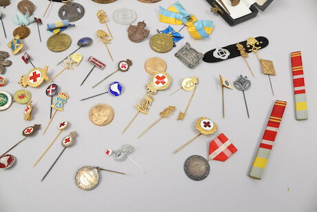 Pins, medaljer och brevkniv