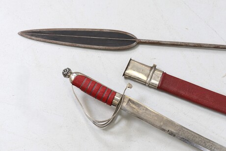 Auktioner Sport & Fritid Spjut och dekorationsvärja,. 1900-talets andra hälft, längd 162 cm och mindre
